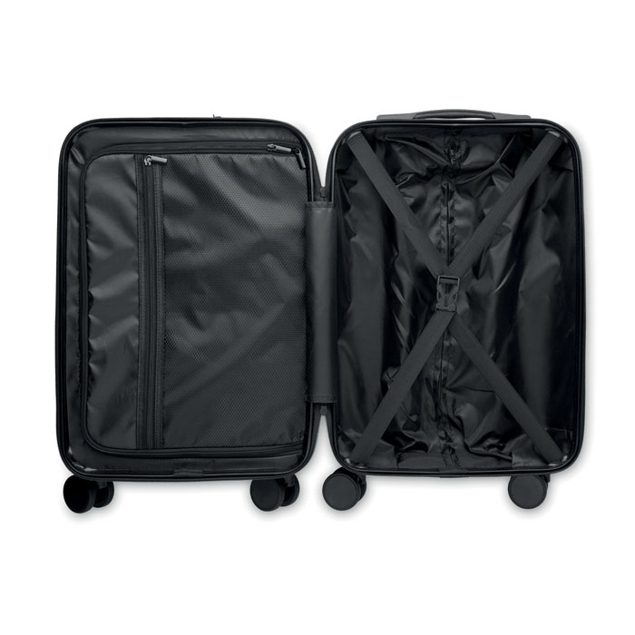 De harde schaal biedt ruimte voor personalisatie met logo of bedrijfsnaam, waardoor deze trolley niet alleen praktisch is, maar ook een opvallend en luxe relatiegeschenk.