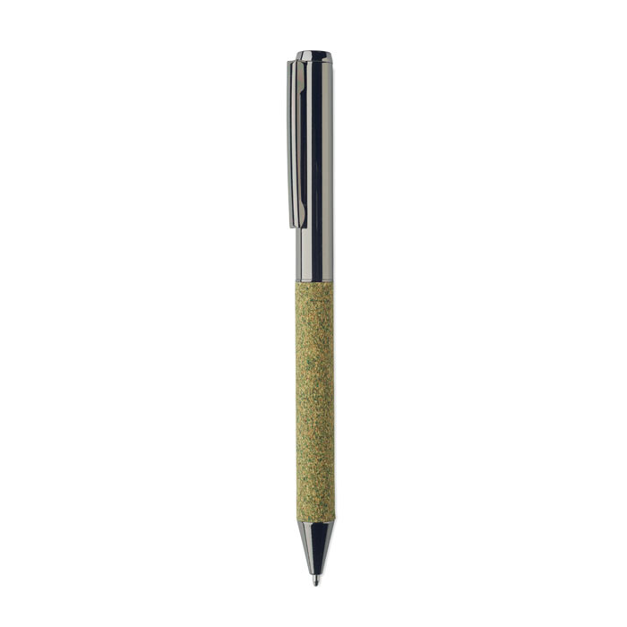 Formaat: A5 notitieboek Pagina’s: ca. 80 vellen / 160 pagina’s gelinieerd gerecycled papier 70 g/m² Omslag: 20 procent theedrab 30 procent kurk en 50 procent polykatoen Extra’s: metalen detail op elastiek metalen balpen met draaimechanisme en sleutelhanger Afmeting: 22,6 × 21,6 × 2,5 cm Materiaal: theedrab kurk polykatoen en metaal Certificering: FSC® Mix FSC-C213206