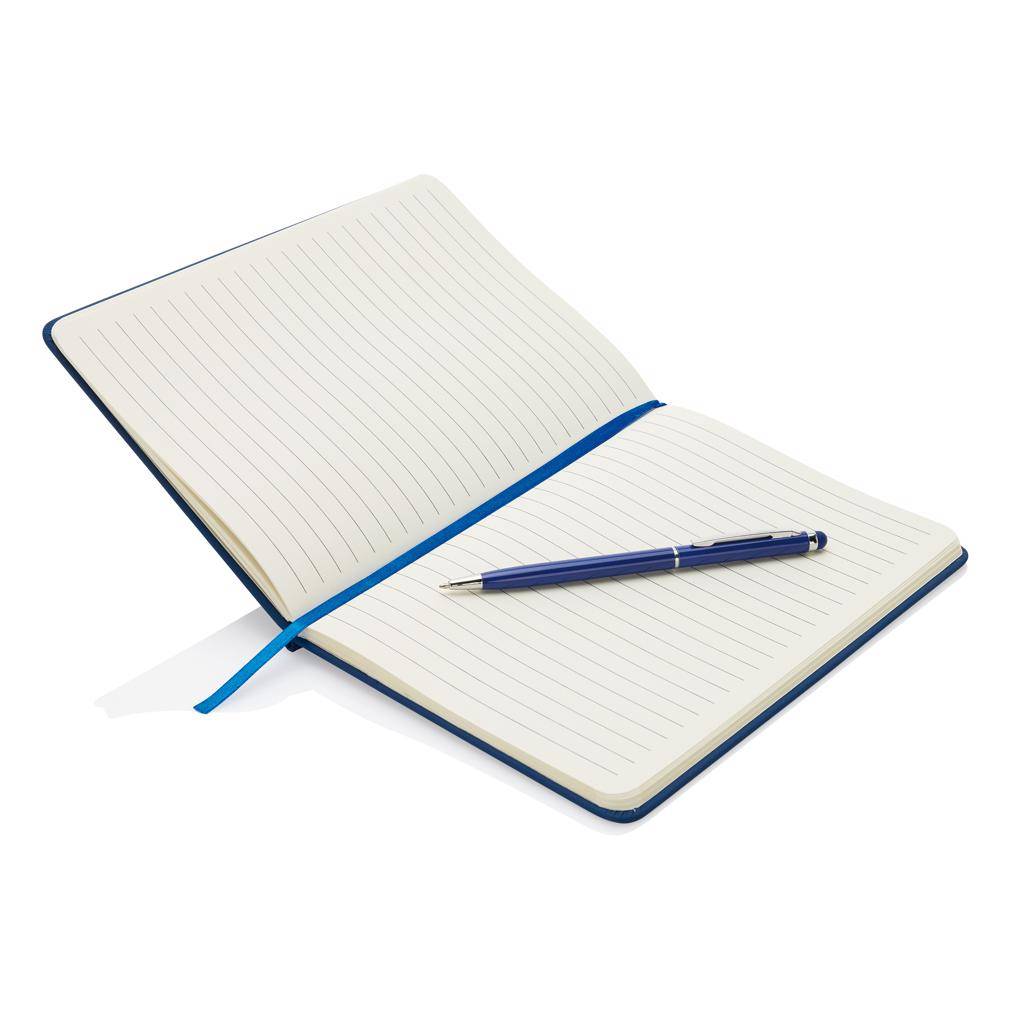 Dit A5 hardcover notitieboek met stylus pen combineert schrijven en digitaal werken in één praktische set. De PU omslag geeft het notitieboek een representatieve en professionele uitstraling, terwijl de geïntegreerde pen sleeve ervoor zorgt dat de stylus pen altijd binnen handbereik is.