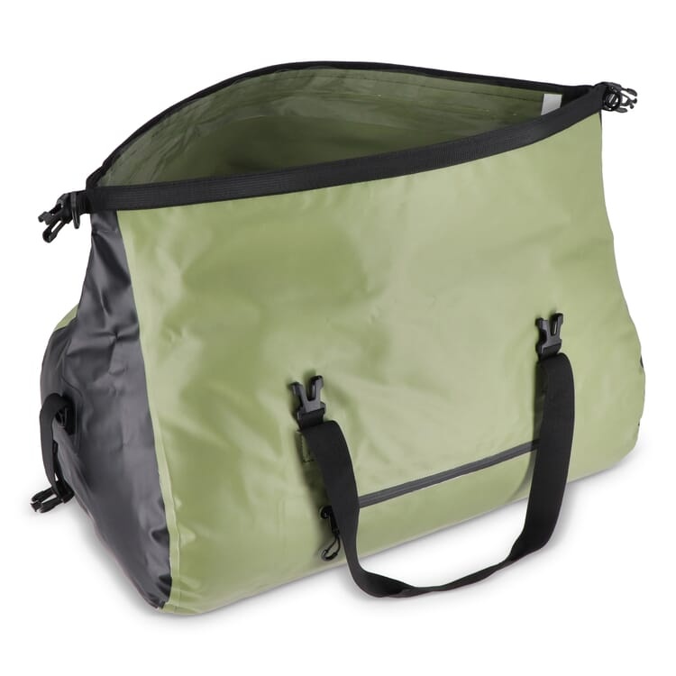 Eigenschappen: Volledig waterdicht, grote inhoud, verstelbare schouderband, robuuste constructie