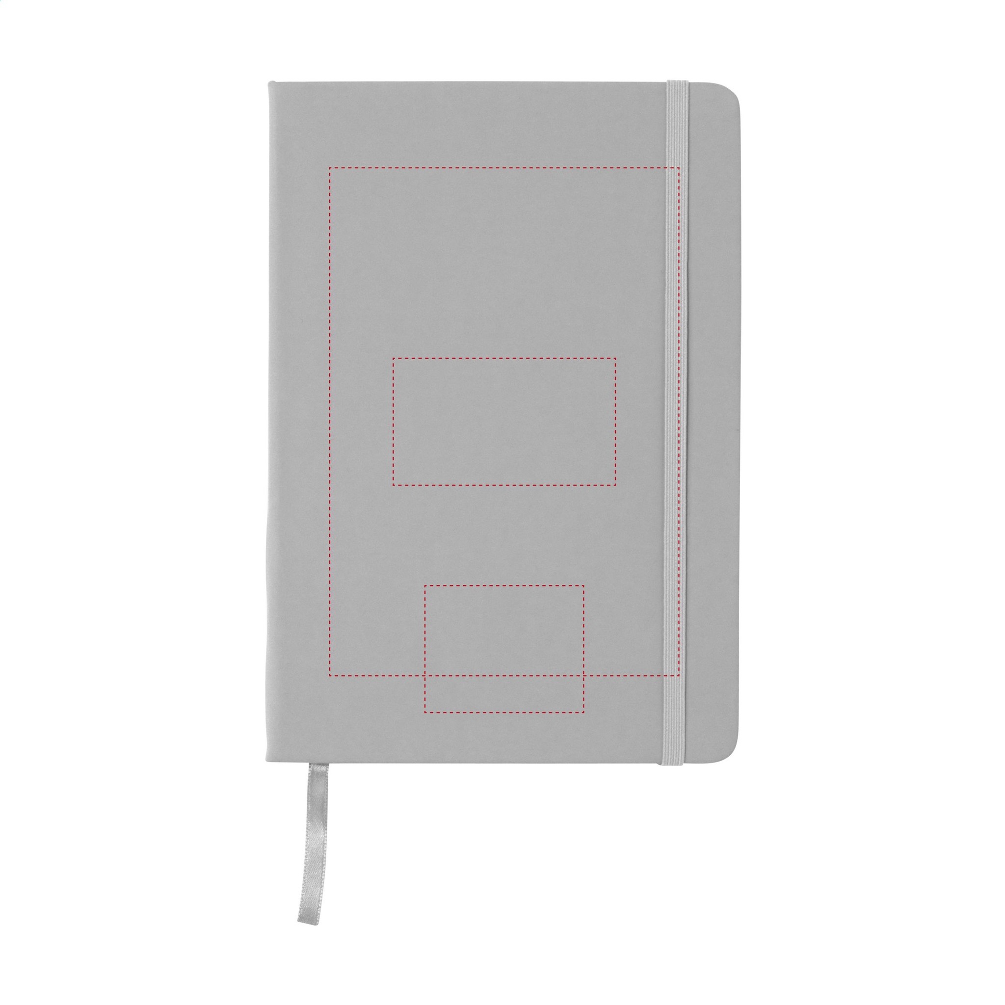 Uw bedrijfslogo kan eenvoudig worden aangebracht via tampondruk. Drukformaat: 70 × 40 mm. Dit maakt het BudgetNote A5 Blanc notitieboekje een uitstekend relatiegeschenk voor elke zakelijke gelegenheid.