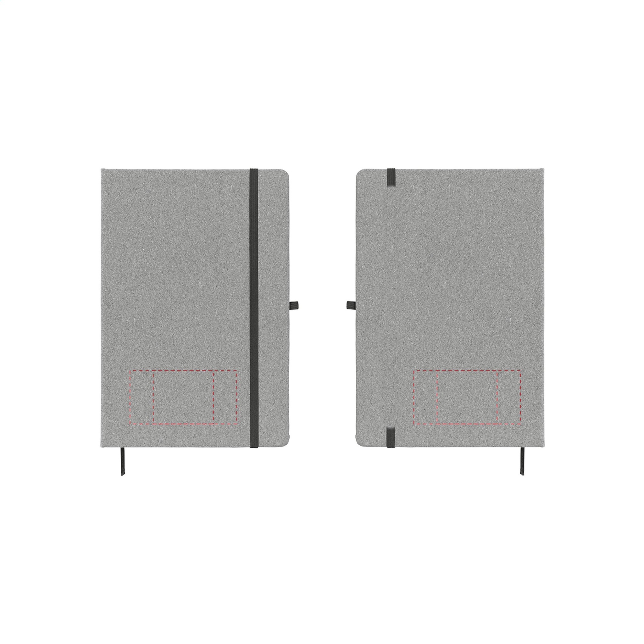 Uw logo kan op de kaft worden aangebracht via tampondruk (meest gekozen). Drukformaat: 80 × 40 mm. Maximaal aantal drukkleuren: 2.