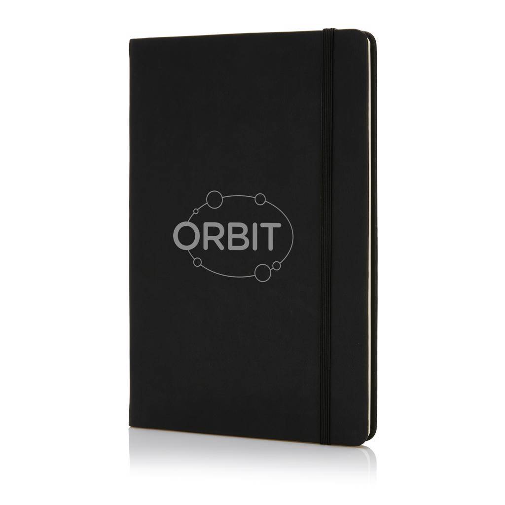 Formaat: 1,5 x 14,5 x 21,5 cm. Materiaal: papier en PU omslag met polyester afwerking. Inhoud: 160 pagina’s. Eigenschappen: hardcover uitvoering, luxe PU kaft, geschikt voor embossing. Gebruik: vergaderingen, notities, kantoor, opleidingen. Personalisatie: logo embossing op de omslag.