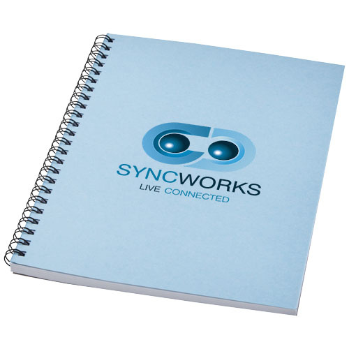 Het Desk-Mate® A5 kleuren spiraal notitieboek combineert functionaliteit, duurzaamheid en stijl in één compact formaat. Het notitieboek bevat 50 vellen blanco 80 g/m² gerecycled papier, ideaal voor notities, schetsen of creatieve projecten. De stevige 300 g/m² kartonnen cover is verkrijgbaar in diverse kleuren en geeft het boek een speelse en professionele uitstraling.