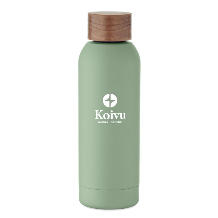 De buitenzijde van de fles is uitstekend geschikt om te bedrukken met logo of boodschap. Door de dagelijkse gebruiksfrequentie ontstaat langdurige merkzichtbaarheid, zowel op de werkvloer als onderweg. De natuurlijke houten dop en matte afwerking versterken de premium uitstraling van de bedrukking en zorgen voor een onderscheidend eindresultaat.