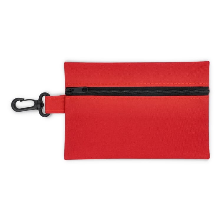 Formaat: 155 x 105 x 15 mm Materiaal: polyester 300D Eigenschappen: 13-delige EHBO set, karabijnhaak, compact en lichtgewicht, voldoet aan Europese normen Inhoud: filmverbanden, pleisters, reinigingsdoekjes en alcoholdoekjes Gebruik: reizen, sport en outdoor Personalisatie: bedrukken met logo mogelijk