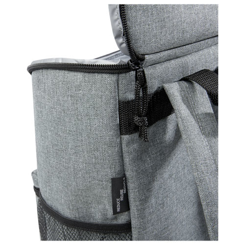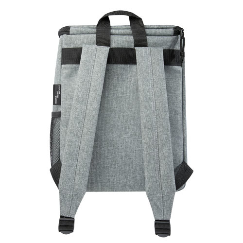 Deze koelrugzak is gemaakt van sterk 600D gerecycled polyester en draagt bij aan vermindering van plastic afval. Aan de zijkant bevindt zich een meshvak voor een drinkfles, terwijl het voorvak met ritssluiting ruimte biedt voor kleinere items zoals sleutels, portemonnee of telefoon. De gevoerde, verstelbare schouderbanden zorgen voor optimaal draagcomfort, ook bij langere draagmomenten.