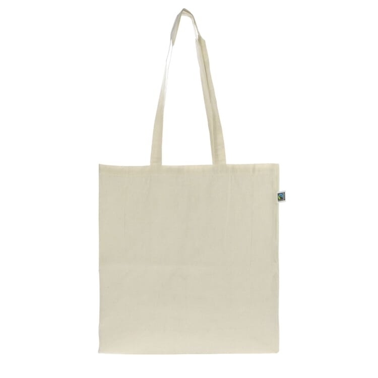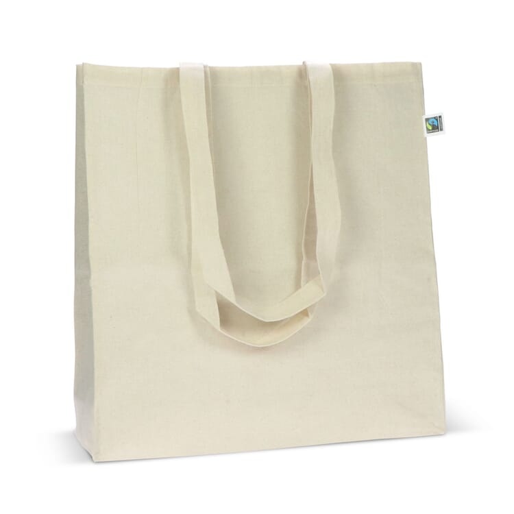 De tas heeft lange handvatten waardoor ze comfortabel over de schouder gedragen kan worden, ideaal voor winkelen, evenementen of promotionele doeleinden. De natuurlijke ecru kleur zorgt voor een tijdloze uitstraling die past bij elke stijl. Door te kiezen voor Fairtrade gecertificeerd katoen draag je bij aan betere leef- en werkomstandigheden van producenten wereldwijd.