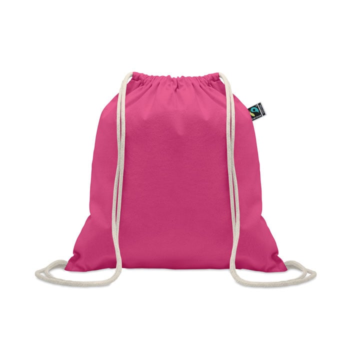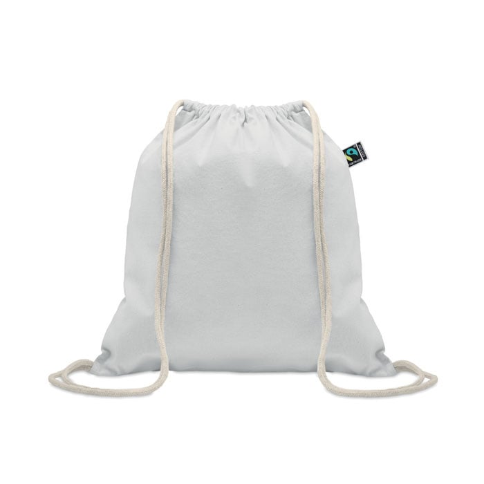 Formaat: 37 x 41 cm. Materiaal: Fairtrade katoen 180 g/m². Eigenschappen: stevig, herbruikbaar, trekkoordsluiting. Gebruik: sport, events, boodschappen en dagelijks gebruik. Personalisatie: bedrukken met logo.