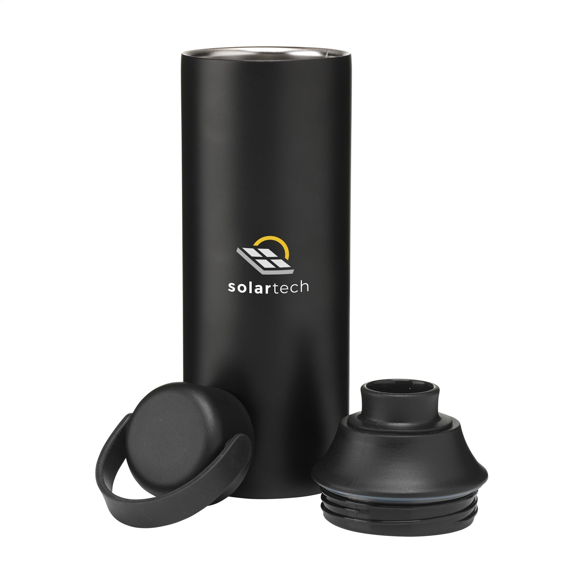 Met een RCS-gecertificeerd gerecycled materiaalpercentage van 80% draagt deze thermosfles bij aan het verminderen van grondstof- en energieverbruik. RVS is bovendien eindeloos recyclebaar zonder kwaliteitsverlies, waardoor dit product een duurzame keuze is. Afgewerkt met een moderne poedercoating en geleverd in een kraft doos.