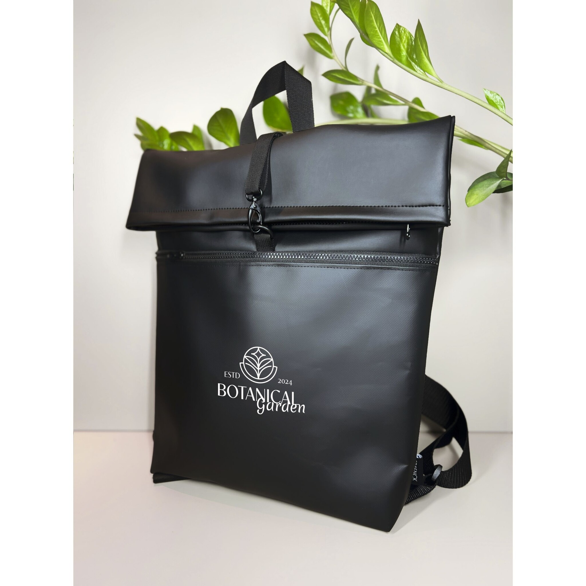Materiaal: geupcycled imitatieleer, geupcycled dekzeil, geupcycled polyester