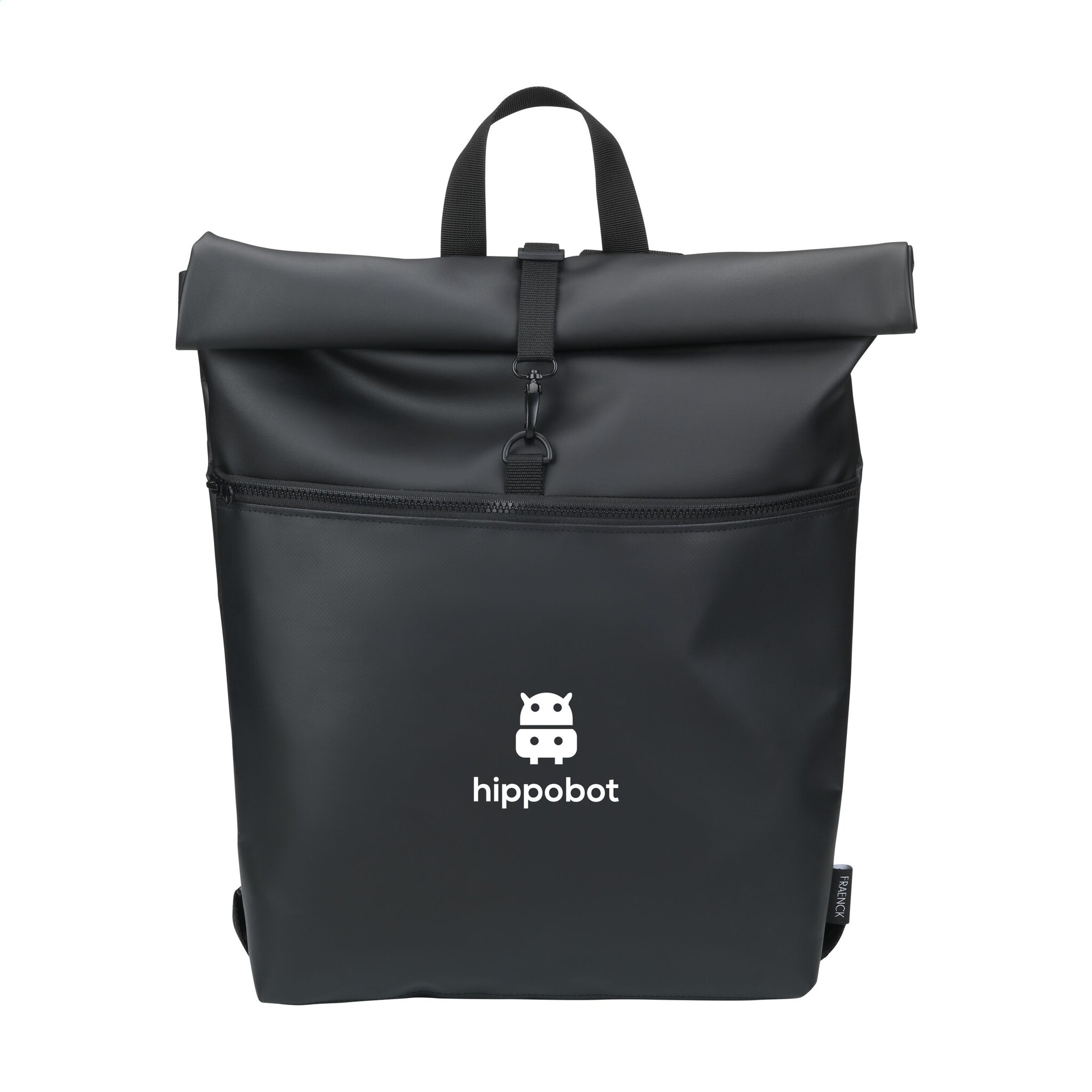 Stoere rugzak van het merk Fraenck. Gemaakt van imitatieleer en geüpcycled zeildoek. Het stevige en waterafstotende materiaal komt van geüpcyclede restantmaterialen uit de zeilmakerij. Het royale binnenvak is voorzien van een extra vak geschikt voor het opbergen van een laptop tot 17 inch. Met een stevige ritssluiting, verstelbare schouderbanden en een draaglus. Een tijdloos design. Made in Holland.