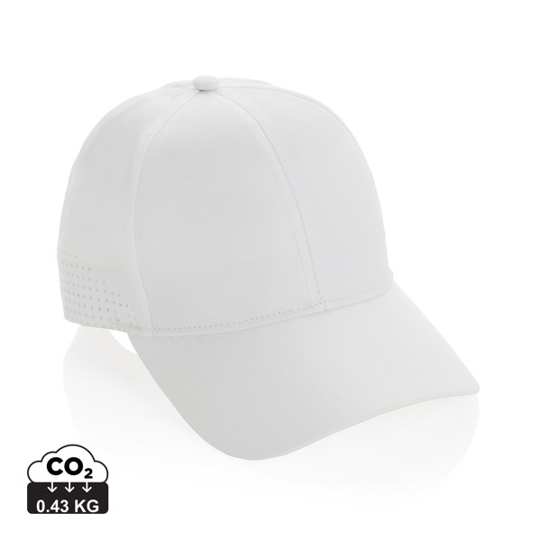 Formaat: 12 x Ø 18,5 cm. Materiaal: AWARE™ gerecycled RPET. Eigenschappen: 6 panel sportcap, geventileerde luchtgaten, verstelbare gesp, omtrek circa 58 cm, 1,5 gerecyclede PET-flessen per cap, donatie aan Water.org. Gebruik: promotie, events, sport en dagelijks gebruik. Personalisatie: bedrukken of borduren met logo op het voorpaneel.