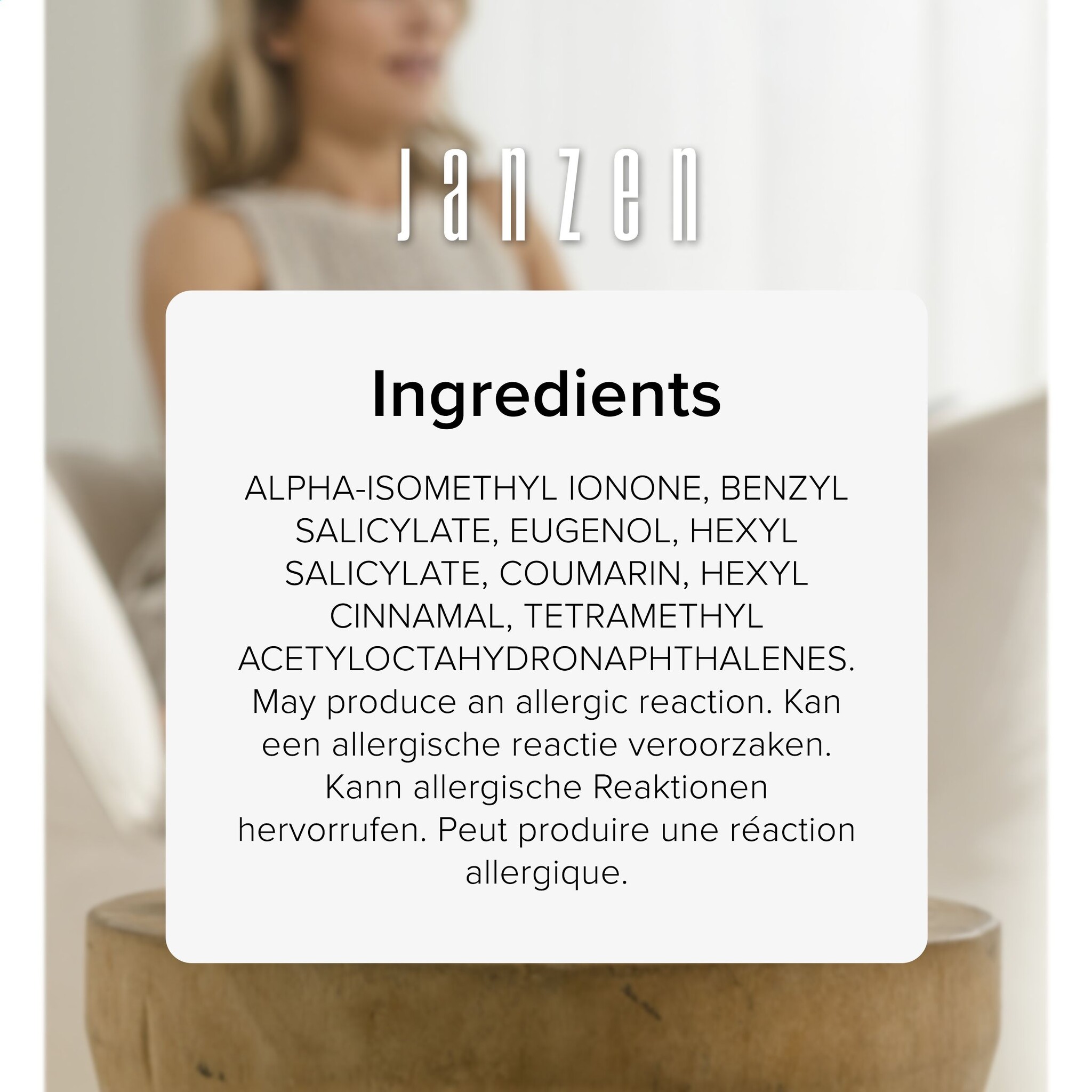 De Janzen Home Fragrance Sticks Fuchsia 69 (Art. 2999) brengen een verfijnde geurbeleving in elke ruimte. De geur Fuchsia 69 is een levendige mix van geurige jasmijn, zachte gardenia, anjer en de bloem der bloemen: ylang-ylang. Lichtvoetig, vrolijk en sensueel. Via de houten stokjes verspreidt het parfum zich gelijkmatig door het huis, of het nu in de woonkamer, slaapkamer, keuken of op kantoor is. Bepaal eenvoudig de geursterkte door het aantal stokjes aan te passen. Het stijlvolle glazen flacon is gevuld met 200 ml parfumolie en wordt geleverd in een geschenkdoos.
