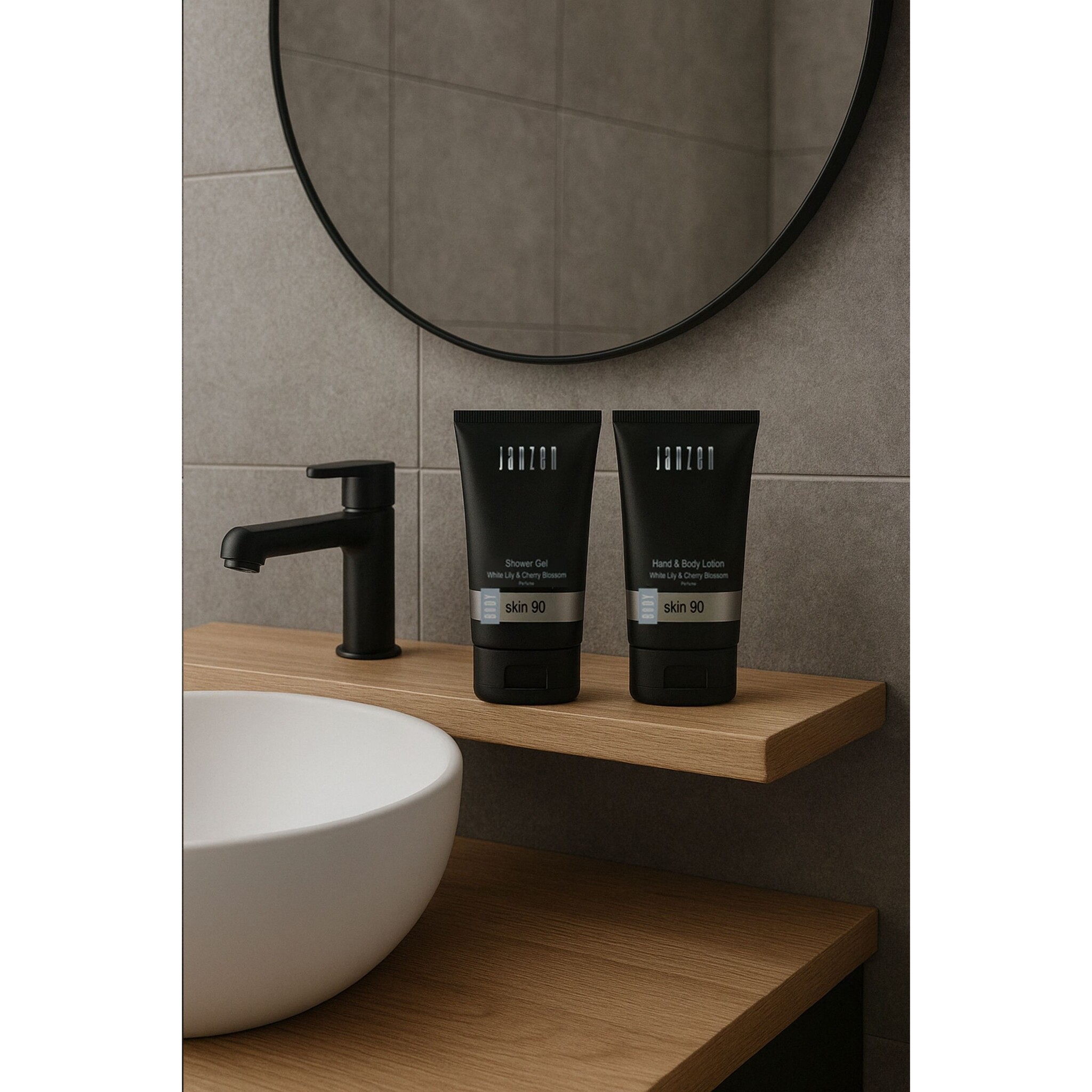 De Janzen Skin 90 Brievenbusgeschenk (Art. 2765) is een stijlvolle en compacte verzorgingsset, perfect geschikt voor direct mail of als persoonlijke attentie. Deze giftset bevat twee verzorgingsproducten van 50 ml: een Shower Gel en een Hand & Body Lotion. De geur Skin 90 is vrolijk, opgewekt en lichtzoet, met de verfijnde geur van Japanse kersenbloesem, gecombineerd met frisse lelie en warme tonkaboon. Deze harmonieuze geurbeleving prikkelt de zintuigen en geeft een gevoel van luxe en verzorging. Verpakt in een brievenbusgeschikte giftbox, klaar om direct te verrassen.