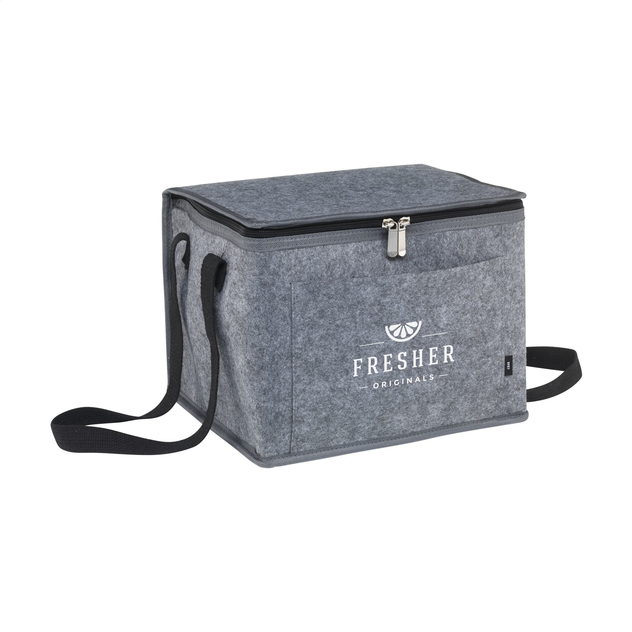 De Keep-it-Cool Felt RPET koeltas is ontworpen voor wie koelen, stijl en duurzaamheid wil combineren. Het stevige RPET-vilt is gemaakt van gerecyclede PET-flessen en voelt robuust aan, terwijl de binnenvoering van 100 procent PEVA zorgt voor betrouwbare isolatie. Zo blijven drankjes en snacks langer koel tijdens zomerse dagen, lunches onderweg of bedrijfsuitjes.