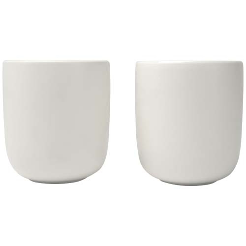 Formaat: 9,3 x 8,2 x 8,2 cm, inhoud: 200 ml per stuk, materiaal: keramiek, eigenschappen: gladde afwerking, ergonomisch ontwerp en set van 2 stuks, gebruik: kantoor, horeca en dagelijks gebruik, personalisatie: bedrukken met logo