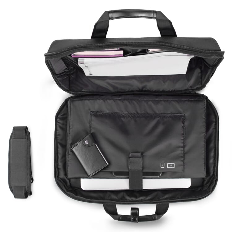 De verstelbare, extra brede schouderband biedt optimaal draagcomfort, terwijl het gevoerde rugpaneel extra ondersteuning biedt. Dankzij de slimme trolleyband kan de tas eenvoudig bevestigd worden aan een koffer, wat reizen comfortabeler en efficiënter maakt. De stevige ritssluitingen en hoogwaardige afwerking maken deze tas ideaal voor professioneel gebruik, onderweg of op kantoor.