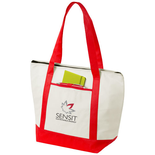 De Lighthouse koeltas is ontworpen voor bedrijven die functionaliteit willen combineren met zichtbare merkcommunicatie in Nederland en België. Het model oogt als een gewone shopper, maar is voorzien van een ruim koelvak met ritssluiting waarin drankjes en lunchproducten langer koel blijven. Hierdoor is deze tas perfect inzetbaar voor zomercampagnes, buitenevenementen en dagelijkse kantoormomenten.