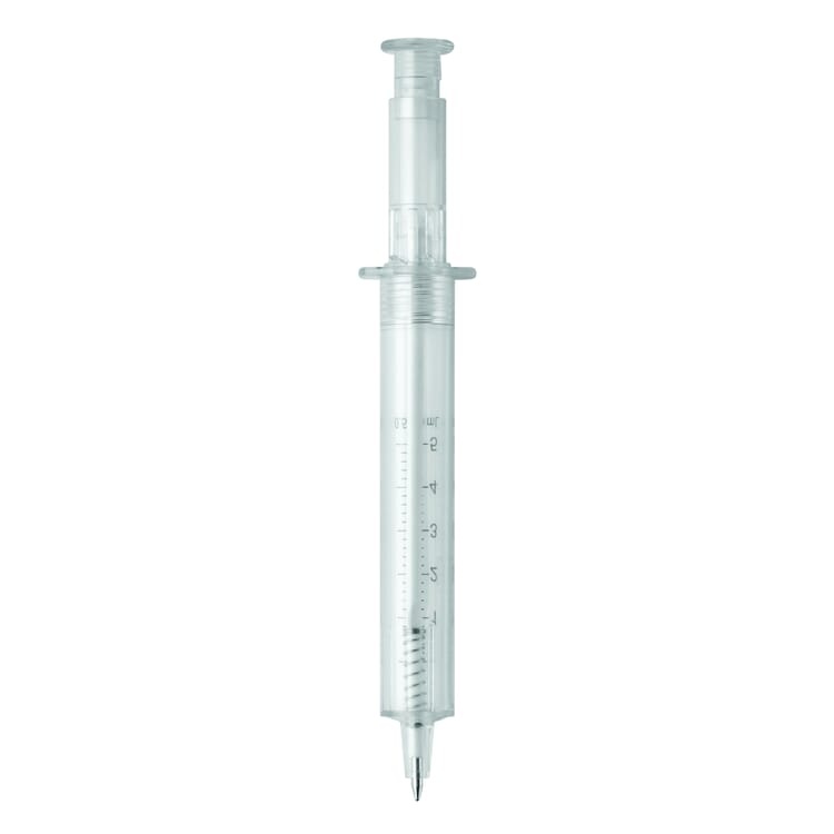 De injectiespuitpen transparant is een speelse en opvallende balpen in de vorm van een injectiespuit en trekt direct de aandacht. Het transparante ontwerp met zichtbare inkt geeft de pen een uniek karakter en maakt hem bijzonder geschikt als promotiemiddel binnen de zorg, medische sector, apotheken en evenementen met een gezondheidsthema.
