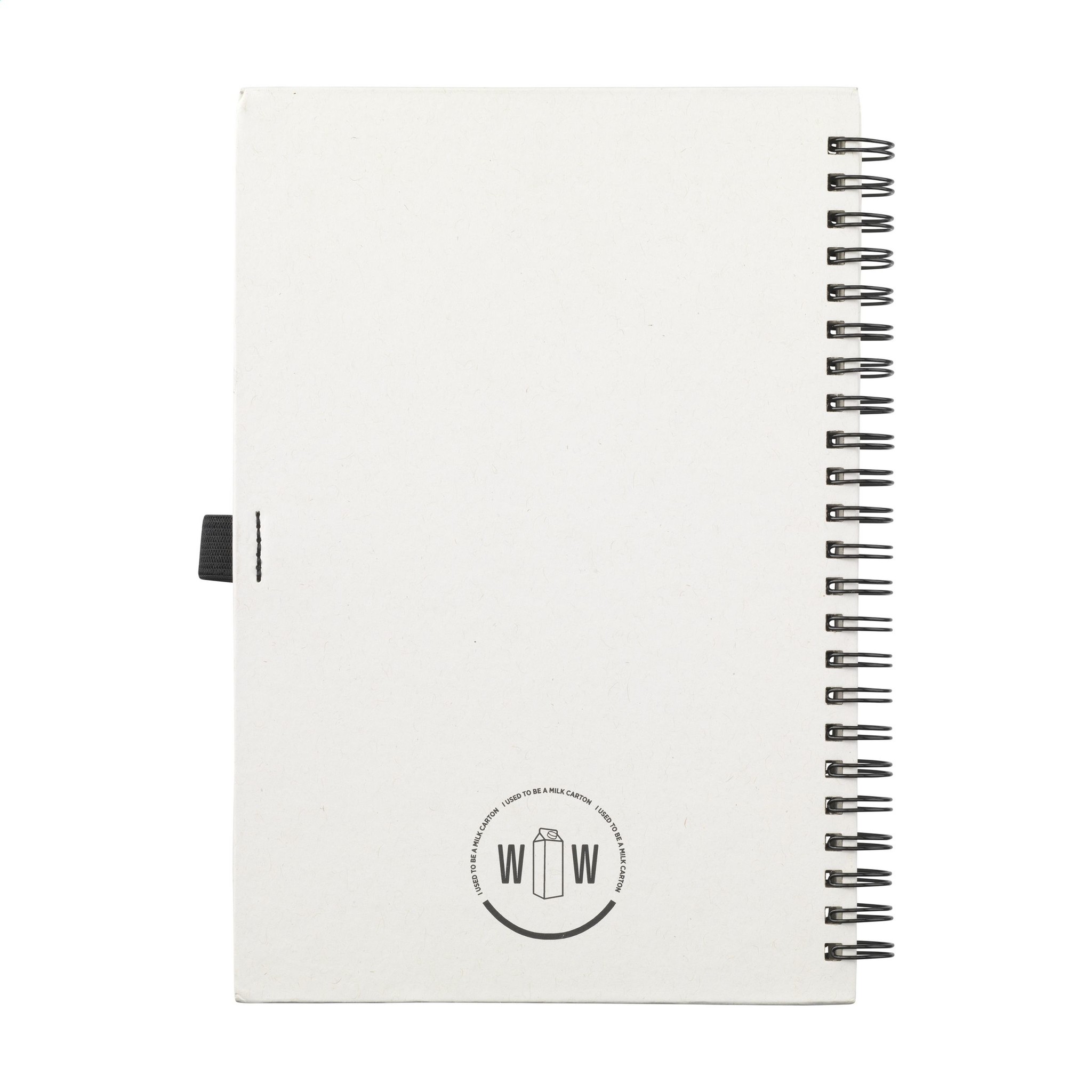Dit notitieboekje is een praktisch en circulair relatiegeschenk dat dagelijks gebruikt wordt en zo maximale zichtbaarheid biedt aan uw merk. Dankzij de cover van melkpakken en FSC-gecertificeerd papier draagt het bij aan een duurzamere wereld. Bedrukt met uw logo is het perfect voor klanten, medewerkers of zakenpartners, en ideaal voor grotere oplages bij beurzen en evenementen.