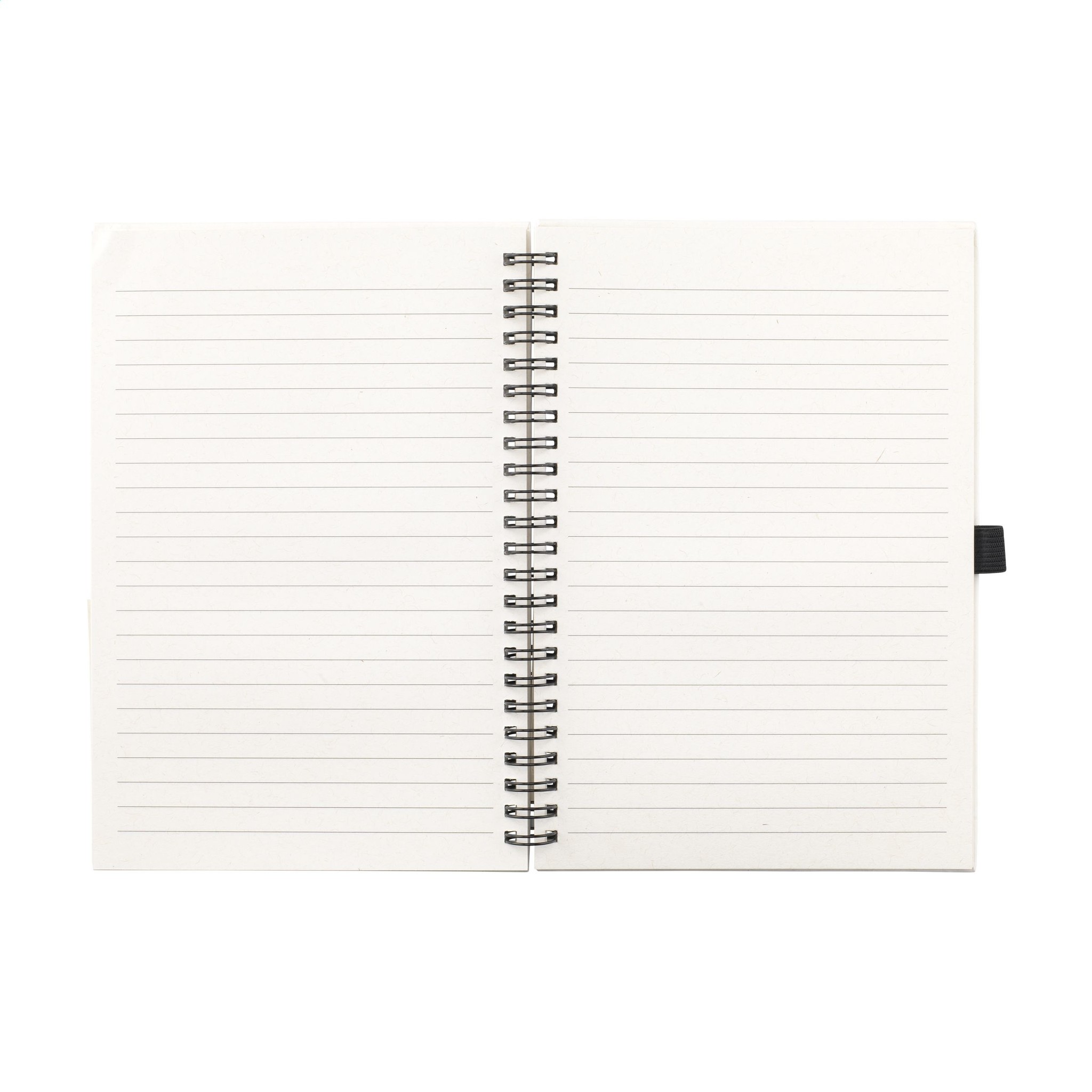 Het notitieboek bevat ca. 70 vellen / 140 pagina’s crèmekleurig, gelinieerd FSC-gecertificeerd papier (80 g/m²). Dankzij de stevige wire-o-binding kan het boekje volledig plat openliggen, wat extra schrijfcomfort biedt. Voorzien van een penlus, sluitelastiek en een leeslint is dit een zeer praktisch en compleet notitieboekje.