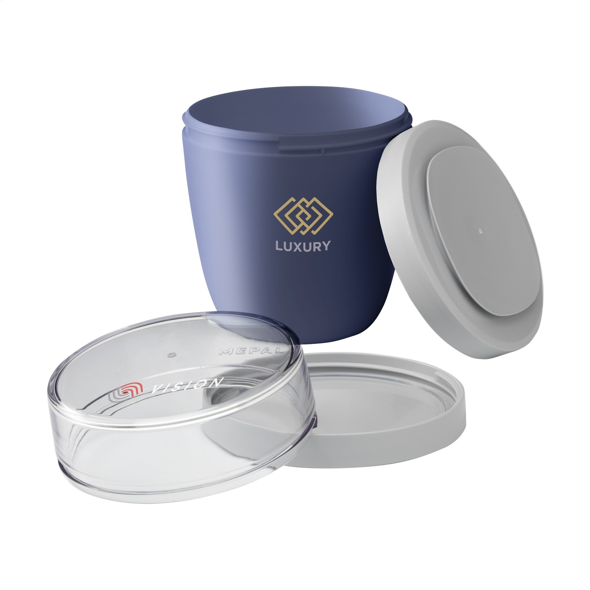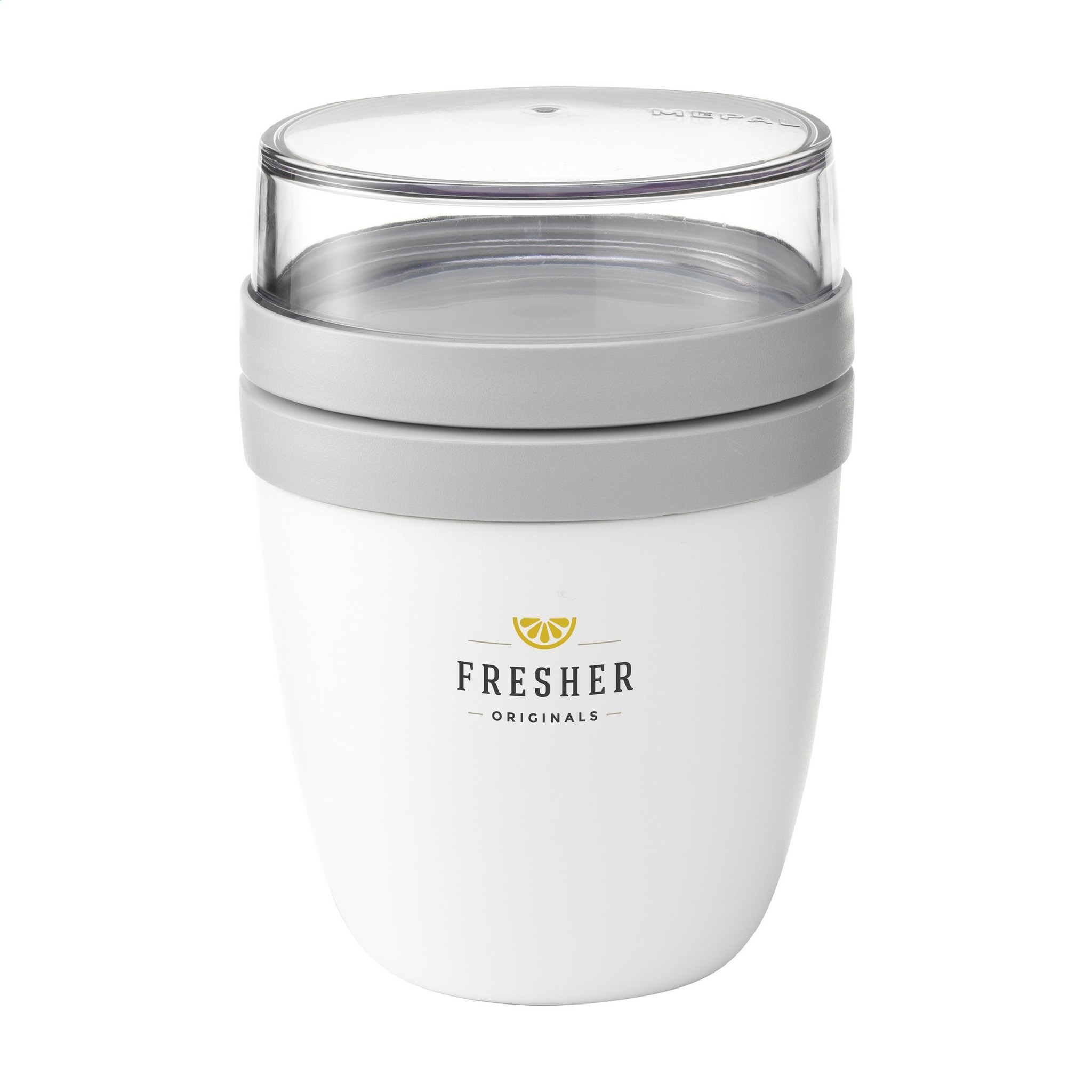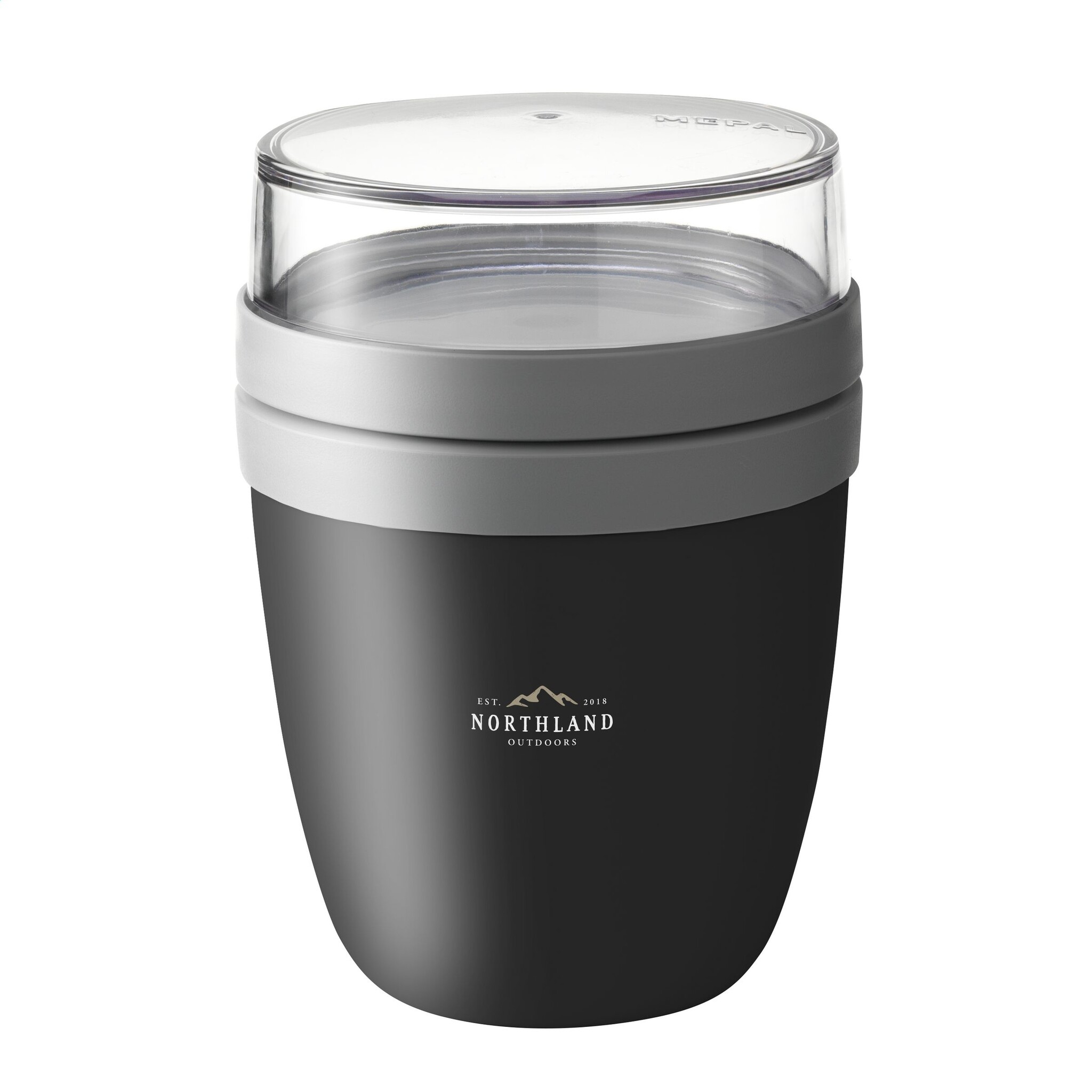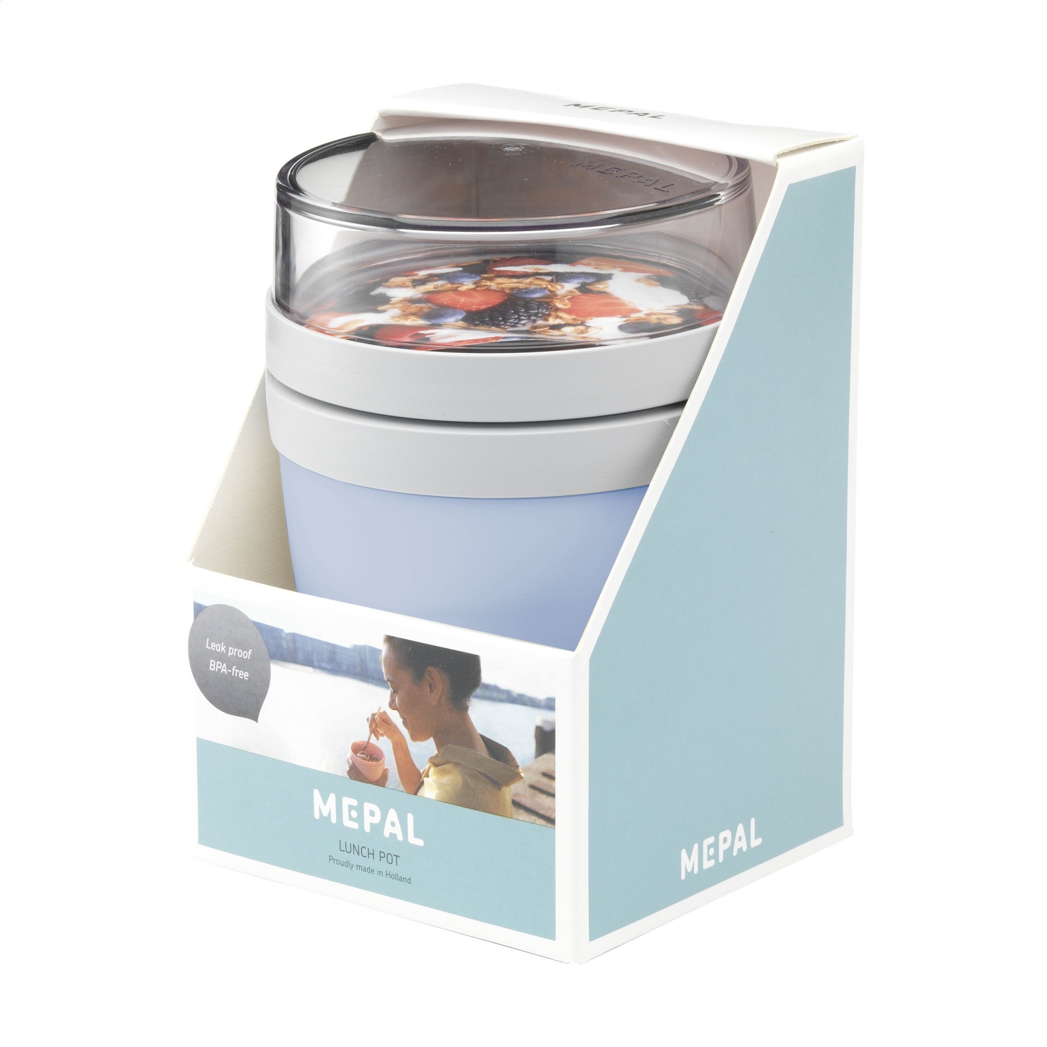 Het bovenste transparante compartiment heeft een inhoud van 200 ml, geschikt voor ongeveer 75 gram muesli, fruit of snack. Het onderste compartiment biedt 500 ml ruimte voor een royale portie soep, noedels of yoghurt.