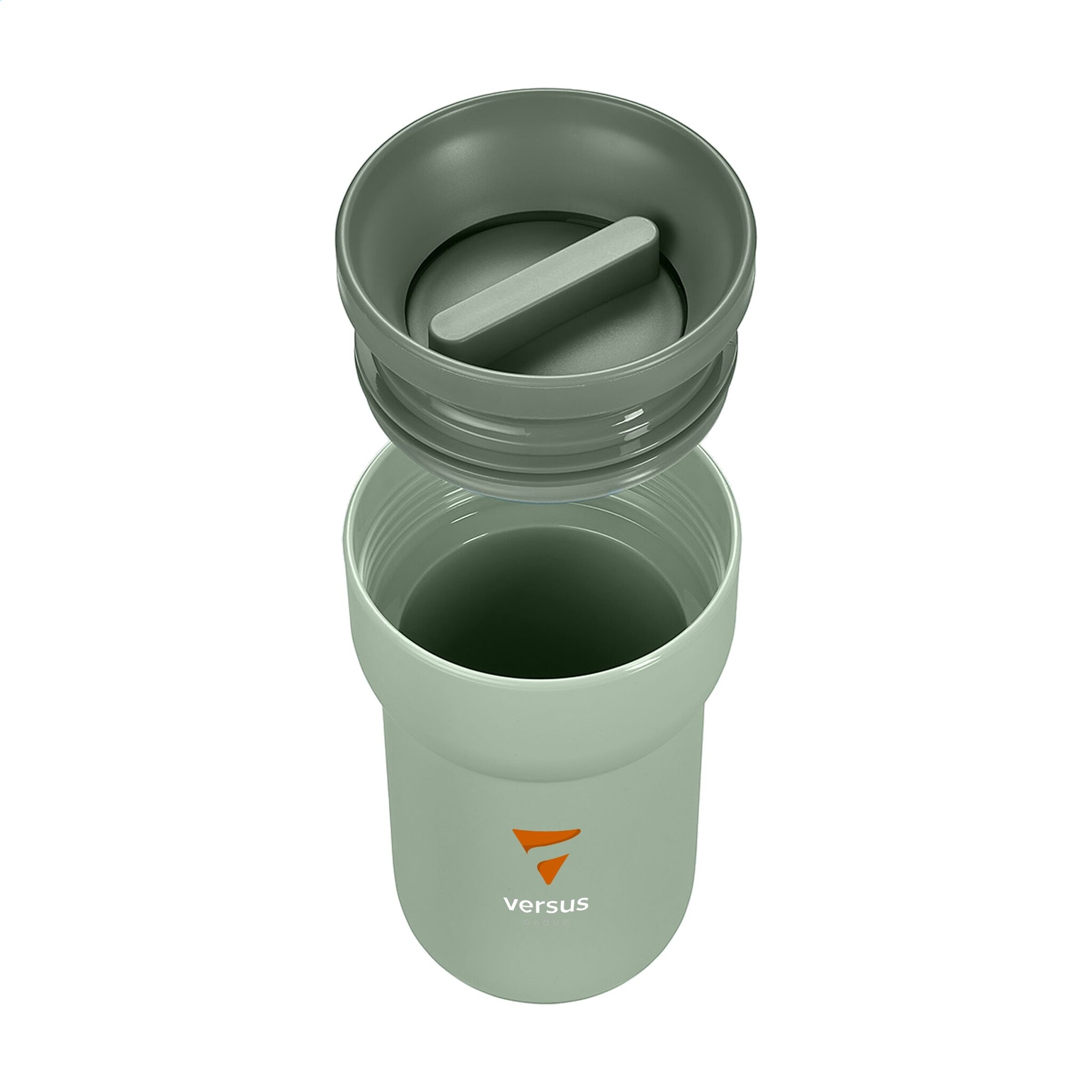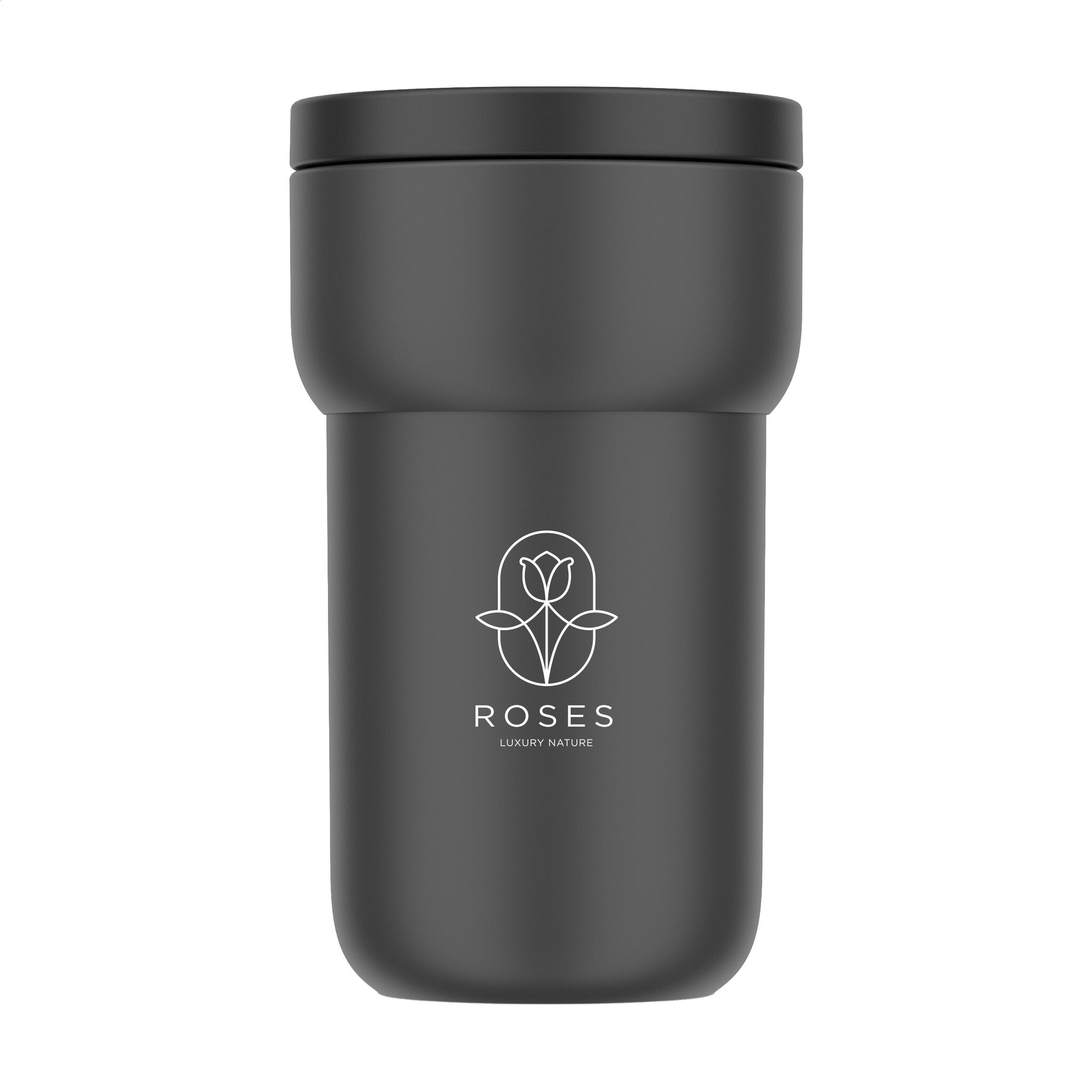 De drinkopening in het schroefdeksel open je eenvoudig met één beweging, waardoor drinken onderweg snel en comfortabel gaat. Dankzij het handzame formaat past deze reisbeker in bijna iedere tas en bekerhouder, waardoor het een praktisch en duurzaam relatiegeschenk is voor medewerkers en klanten.