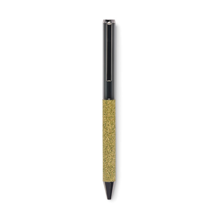 De pen wordt geleverd in een unieke stoffen houder, gemaakt van een innovatieve mix van 20% theedrab, 30% kurk en 50% TC polykatoen. Dit geeft de verpakking niet alleen een bijzondere uitstraling, maar benadrukt ook de duurzame keuze achter dit product. De houder wordt gepresenteerd in een kartonnen doos, wat zorgt voor een stijlvolle presentatie als geschenk.