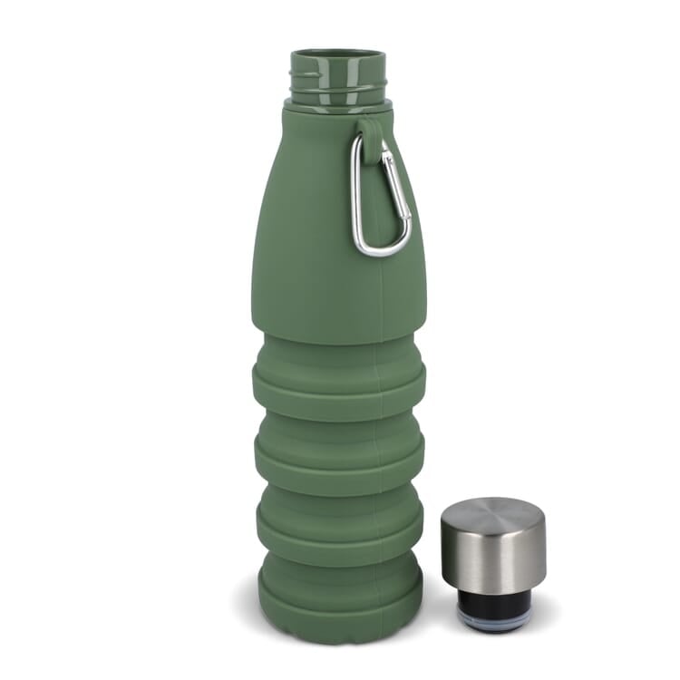 Formaat: 170 mm Inhoud: 550 ml Materiaal: siliconen Eigenschappen: opvouwbaar, lichtgewicht, karabijnhaak Gebruik: reizen, sport, festivals, outdoor Personalisatie: bedrukken met logo mogelijk
