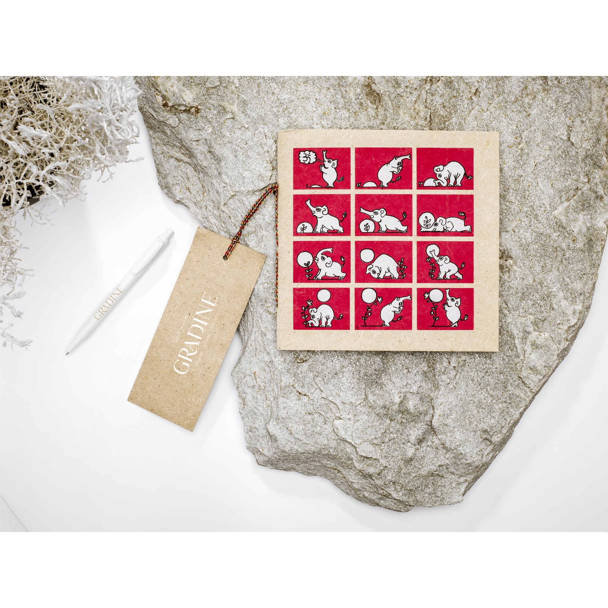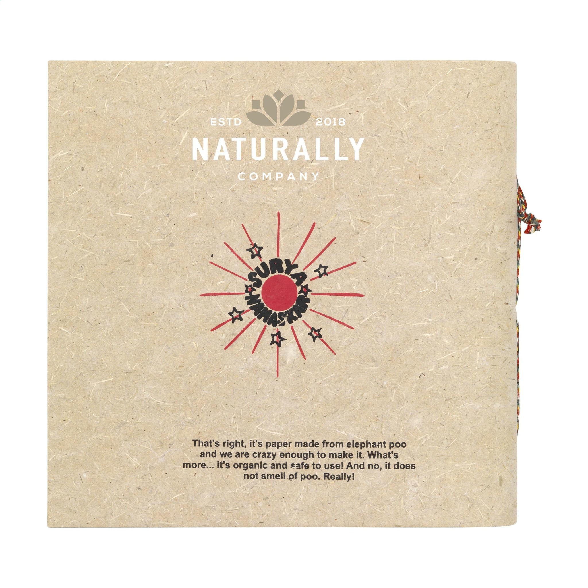 Het Organisch notitieboekje van olifantenpoep is een uniek en duurzaam relatiegeschenk met een bijzonder verhaal. De cover (400 g) en de pagina’s van dit notitieboekje zijn gemaakt van olifantenpoep, verwerkt tot organisch en gerecycled papier. Uiteraard is het notitieboekje veilig te gebruiken en geurloos.