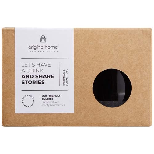 De Originalhome glazen set bestaat uit twee handgemaakte drinkglazen van 160 ml die zijn vervaardigd uit geüpcyclede lege bierflesjes. Deze flesjes zijn afkomstig uit de horeca in Goa, India en krijgen dankzij ambachtelijk vakmanschap een tweede leven als stijlvol tafelglas. Elk glas is uniek en laat subtiele variaties zien die het handgemaakte en circulaire karakter benadrukken.