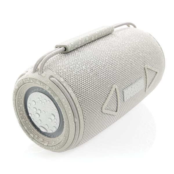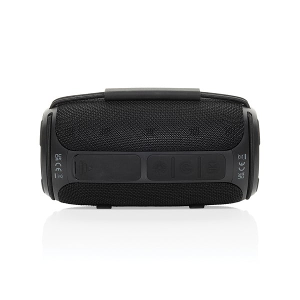 De behuizing is vervaardigd uit RCS-gecertificeerd gerecycled ABS en RPET-stof met een gecontroleerd gerecycled aandeel van zevenendertig procent volgens de Recycled Claim Standard. Dit zorgt voor een transparante herkomst van materialen en een lagere milieu-impact zonder concessies aan kwaliteit of uitstraling. Met lasergravering wordt deze luidspreker een tastbare en langdurige merkdrager. Ondersteund door een familiebedrijf met ervaring sinds 1972 en standaard artikel op voorraad.