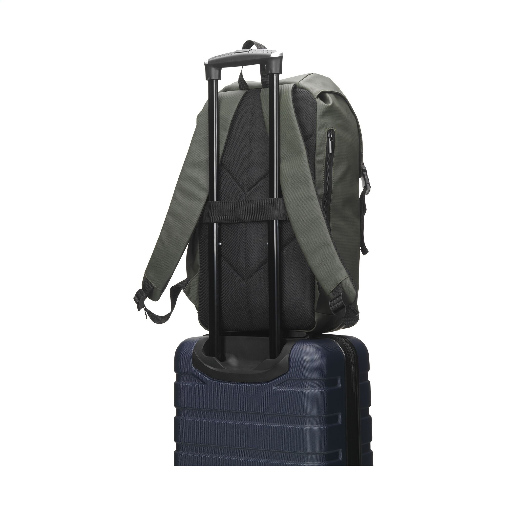 Zeer ruime rugzak van soepel, waterafstotend, 100% gerecycled polyester. Deze rugzak beschikt over een zeer ruim hoofdvak met een apart laptopvak (tot 15,6 inch), een extra ritsvak aan de zijkant en een vak voor een drinkfles. De verstelbare schouderriemen en de rugzijde zijn voorzien van ademend gaas en foam voor extra draagcomfort. Keurig afgewerkt en gevoerd met 100% gerecycled 210D polyester. Voorzien van een trekkoordsluiting en overslag met kliksluitingen en een reflecterend accent voor zichtbaarheid in het donker. Perfect als sporttas, met voldoende ruimte voor kleding en schoenen maar ook ideaal als reistas of schooltas. GRS-gecertificeerd. Totaal gerecycled materiaal: 73%. Inhoud ca. 20 liter.