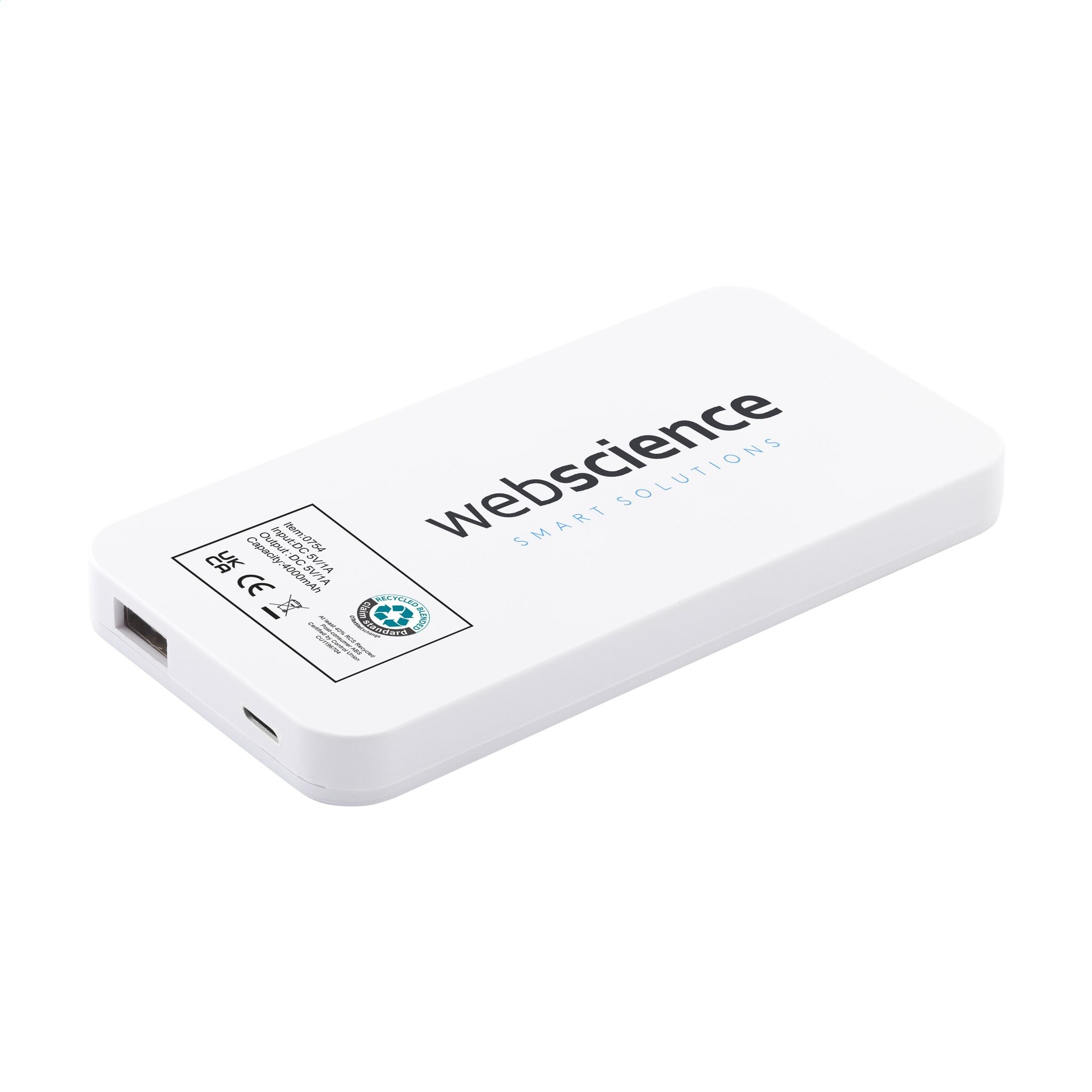 De Solar Powerbank 4000 biedt een duurzame en krachtige oplossing om mobiele apparaten op te laden, waar je ook bent. De powerbank heeft een hoogcapaciteitsbatterij van 4000mAh en kan zowel via zonne-energie als via netstroom (USB-poort) worden opgeladen. De behuizing is vervaardigd van gerecycled ABS, waardoor dit product milieuvriendelijk is en perfect aansluit bij duurzaamheidsinitiatieven.