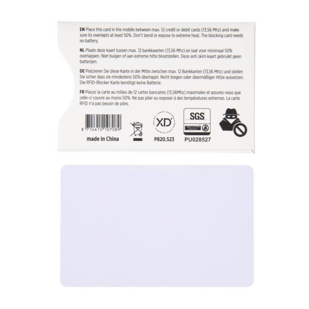 Dankzij het standaard bankpasformaat past de beschermkaart moeiteloos in iedere portemonnee of kaarthouder. Met een afmeting van 8,6 x 5,4 x 0,2 cm en een stevige uitvoering van PVC is de kaart duurzaam en geschikt voor langdurig gebruik. De beschermkaart is licht van gewicht, flexibel inzetbaar en ideaal als extra beveiliging bij reizen, evenementen of woon-werkverkeer in Nederland en België.