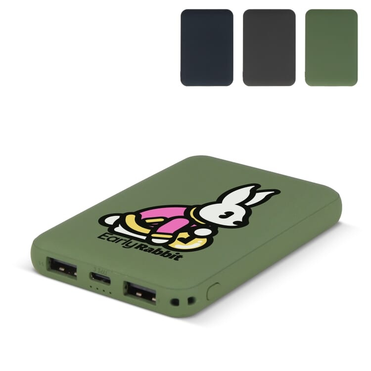 Eigenschappen: 5000mAh capaciteit, micro-USB & Type-C ingang (5V/2A), dubbele USB-uitgang (5V/1A & 2.1A), totaal max. 2.1A