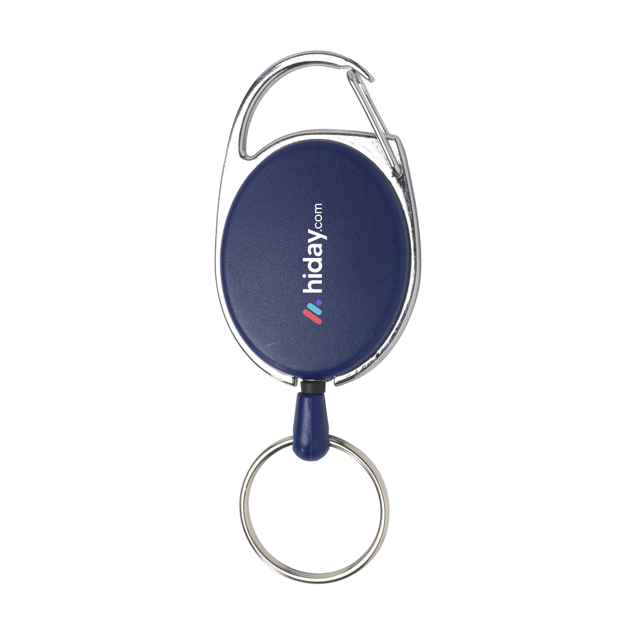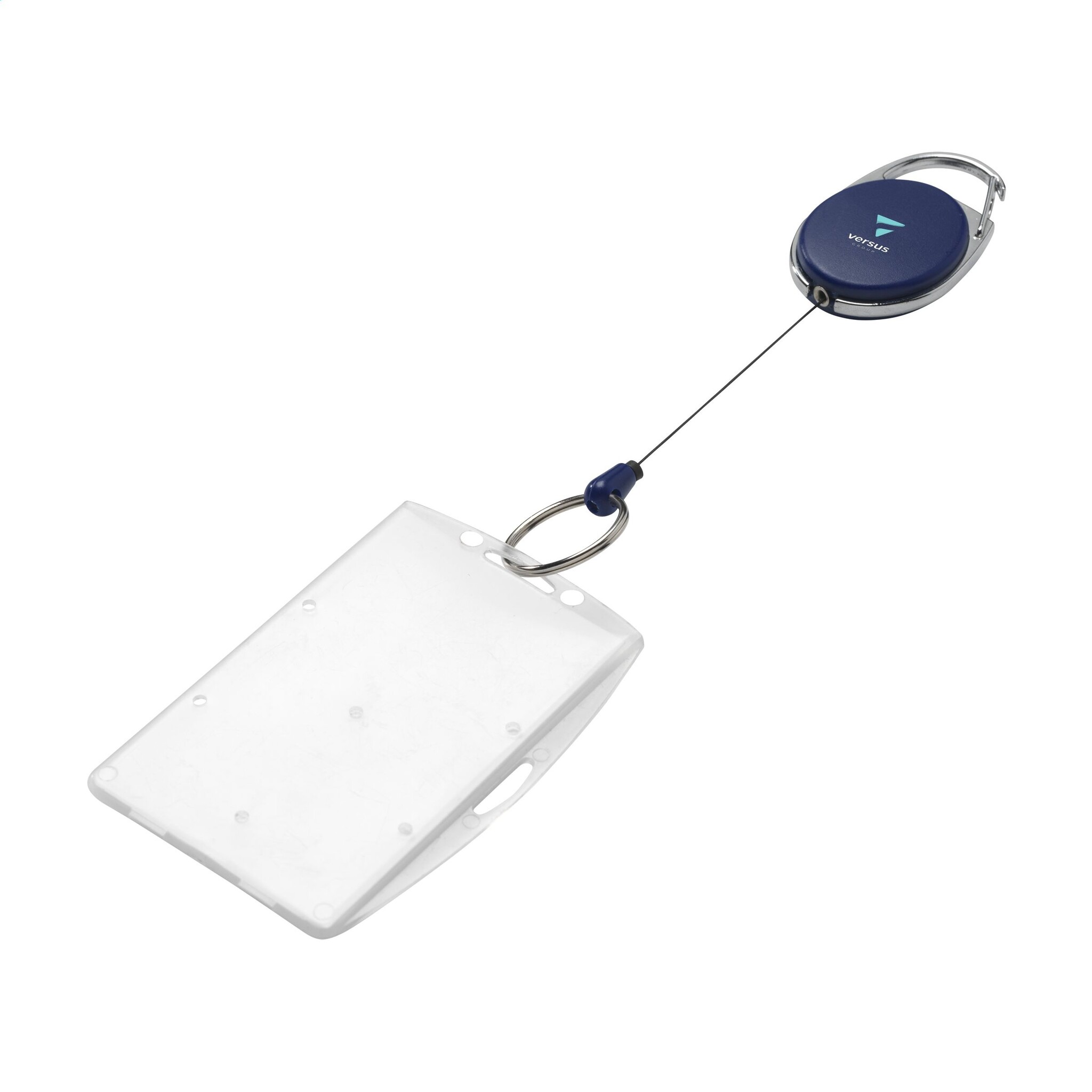 De rollerclip is uitgevoerd in metaal en ABS-kunststof en voorzien van een sleutelring en karabijnhaak. Hierdoor kan de clip eenvoudig aan een broek, tas of lanyard bevestigd worden. Ideaal voor gebruik op kantoren, beurzen, congressen of zelfs tijdens het skiën.
