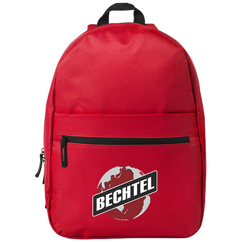 Vancouver polyester rugzak 119428. De Vancouver rugzak is een eenvoudige rugzak met vele mogelijkheden voor het bedrukken van een logo of andere bedrijfsboodschap. De tas is gemaakt van 600D polyester, een sterk materiaal geschikt voor rugzakken van hoge kwaliteit. De tas heeft een hoofdvak met rits voor de grote spullen, terwijl het voorvak met rits handig is voor de kleinere spullen. Dankzij de verstelbare gewatteerde schouderbanden past deze rugzak elke volwassene of kind. Daarnaast is de Vancouver rugzak gemakkelijk te dragen via het handvat aan de bovenkant.