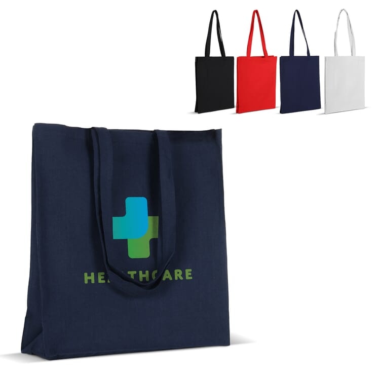 Dankzij de OEKO-TEX® certificering is de tas volledig vrij van schadelijke stoffen en geproduceerd met respect voor mens en milieu. De brede zij- en onderkant maken de tas extra ruim, ideaal voor boodschappen, promotioneel gebruik of dagelijks gebruik. Het gladde canvas oppervlak leent zich uitstekend voor bedrukking met logo of ontwerp, waardoor deze tas een krachtig middel is voor duurzame merkpromotie.