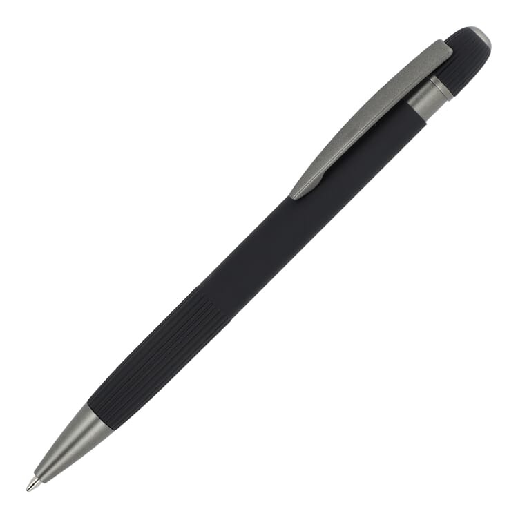 Formaat: 143 mm Materiaal: aluminium, staal en ABS Eigenschappen: soft-touch afwerking, metalen clip, stijlvol lijnpatroon Gebruik: schrijven, kantoor, promotie, dagelijks gebruik Personalisatie: bedrukking met logo mogelijk Schrijfkleur: blauw