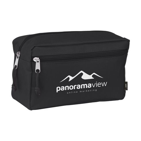 De tas is voorzien van een praktische ophanglus, waardoor hij eenvoudig te gebruiken is in de badkamer, kleedruimte of hotelkamer. Het extra ritsvak biedt aanvullende opbergruimte en zorgt voor overzicht in het hoofdvak. Bedrukking met logo gebeurt via zeefdruk, de meest gekozen druktechniek voor dit model, waardoor jouw logo helder en professioneel zichtbaar blijft bij veelvuldig gebruik.