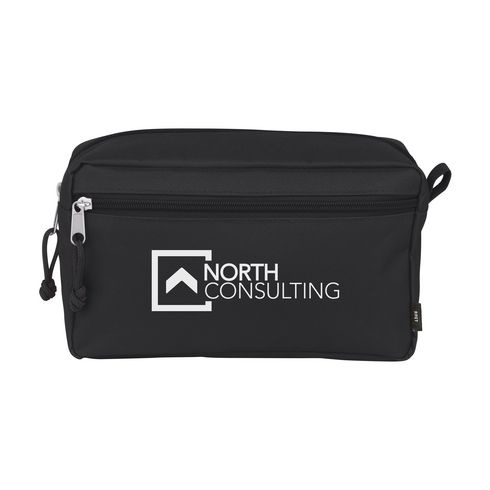 Toilettassen met logo worden vaak gebruikt en dragen daardoor bij aan herhaalde zichtbaarheid van je merk. Deze RPET-uitvoering combineert functionaliteit met een duidelijk duurzaam verhaal, wat goed aansluit bij bedrijven die bewust willen communiceren. Als familiebedrijf met ervaring sinds 1972 leveren wij deze toilettas snel uit voorraad aan klanten in Nederland en België, inclusief gratis ontwerp en verzending.