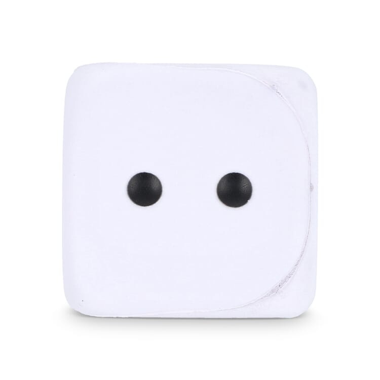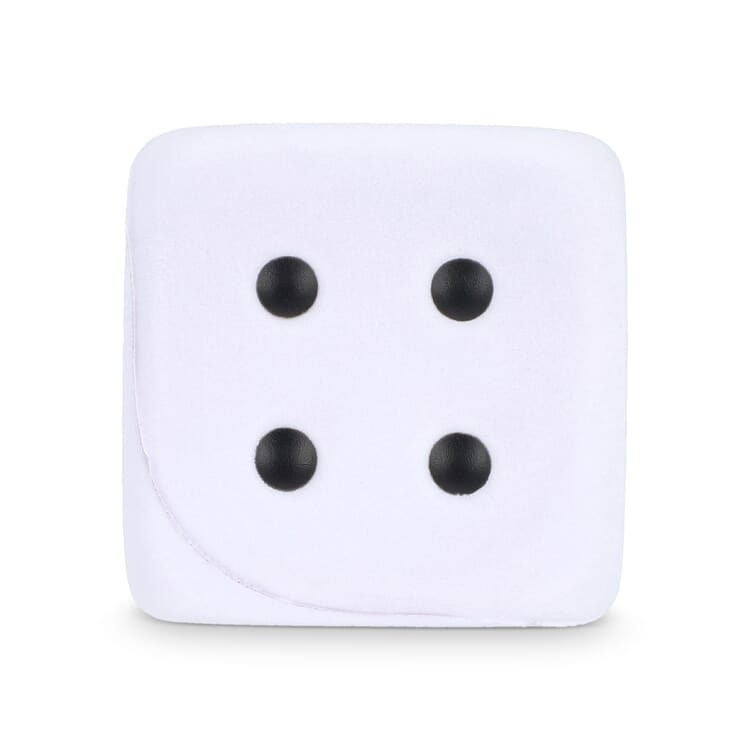 Formaat: 45 x 45 x 45 mm Materiaal: PU foam Eigenschappen: zacht, lichtgewicht, dobbelsteen vorm, vrij drukvlak, stressverlagend Gebruik: ontspanning, werk, promotie en campagnes Personalisatie: bedrukken met logo mogelijk