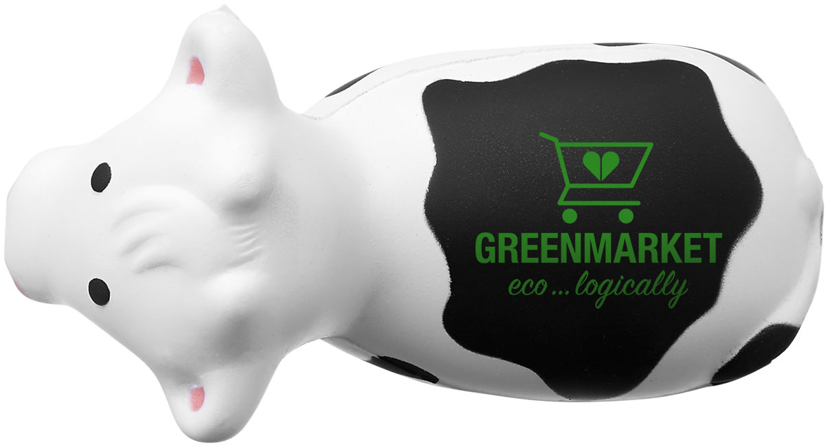 Formaat: 11,5 x 6 x 8,8 cm Materiaal: PU schuim Eigenschappen: zacht, lichtgewicht, koe vorm, stressverlagend Gebruik: ontspanning, werk, promotie en evenementen Personalisatie: bedrukken met logo mogelijk