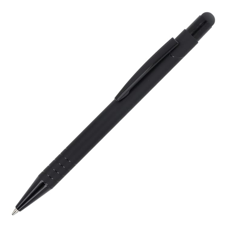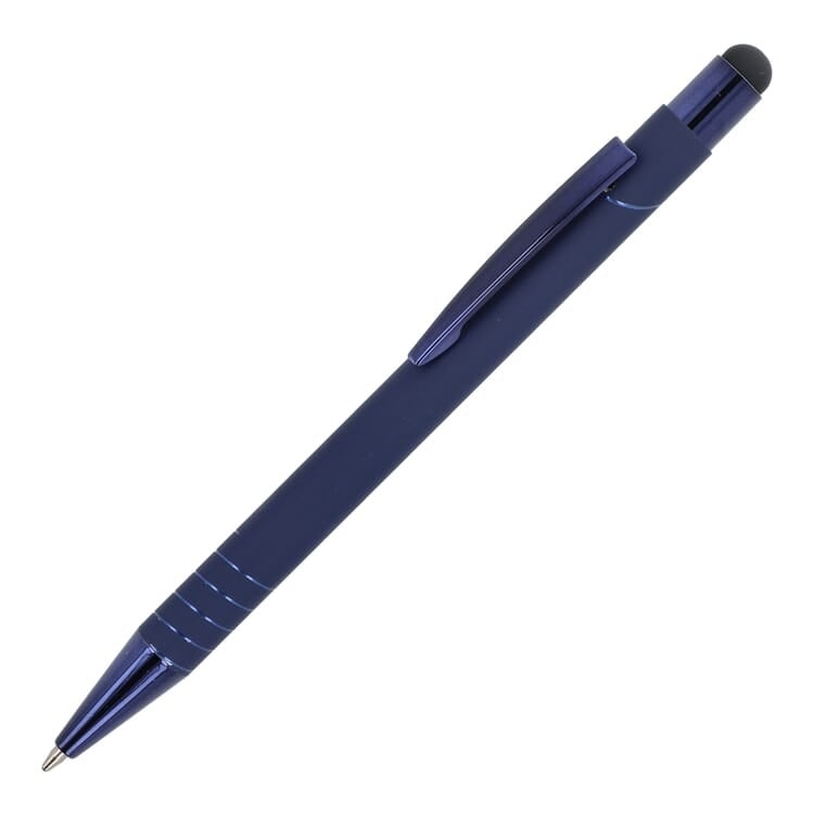 Formaat: 141 mm Materiaal: aluminium Eigenschappen: soft-touch afwerking, stylusfunctie, metalen clip, glanzende accenten Gebruik: schrijven, smartphone, tablet, kantoor, promotie Personalisatie: bedrukking met logo mogelijk Schrijfkleur: blauw jumbo vulling