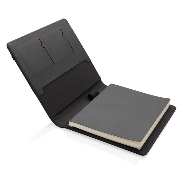 Binnenin vind je drie handige kaartsleuven, een pennenlus en een A5-documentvak. Het hervulbare A5-notitieboekje bevat FSC®-mix crèmekleurig papier van 80 g/m², waardoor je al je aantekeningen, ideeën en vergadernotities stijlvol kunt bewaren. De portfolio wordt geleverd in een FSC®-geschenkdoos, waardoor het een perfect relatiegeschenk is voor klanten of medewerkers die duurzaamheid waarderen.