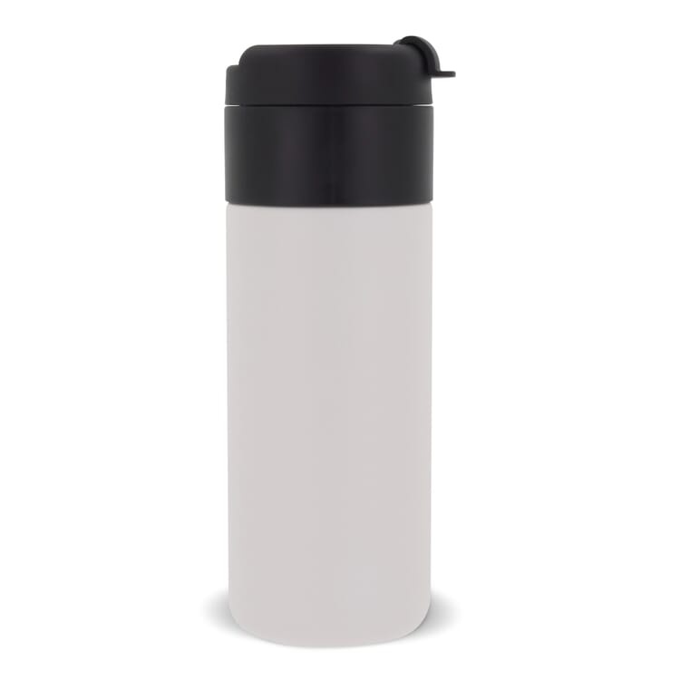 Dankzij het handige handvat neem je de fles eenvoudig overal mee naartoe, terwijl de klapdeksel zorgt voor veilig en comfortabel drinken zonder morsen. De binnen- en buitenwand zijn beide vervaardigd van hoogwaardig roestvrij staal (RVS), waardoor dranken minstens 12 uur warm of 24 uur koud blijven.