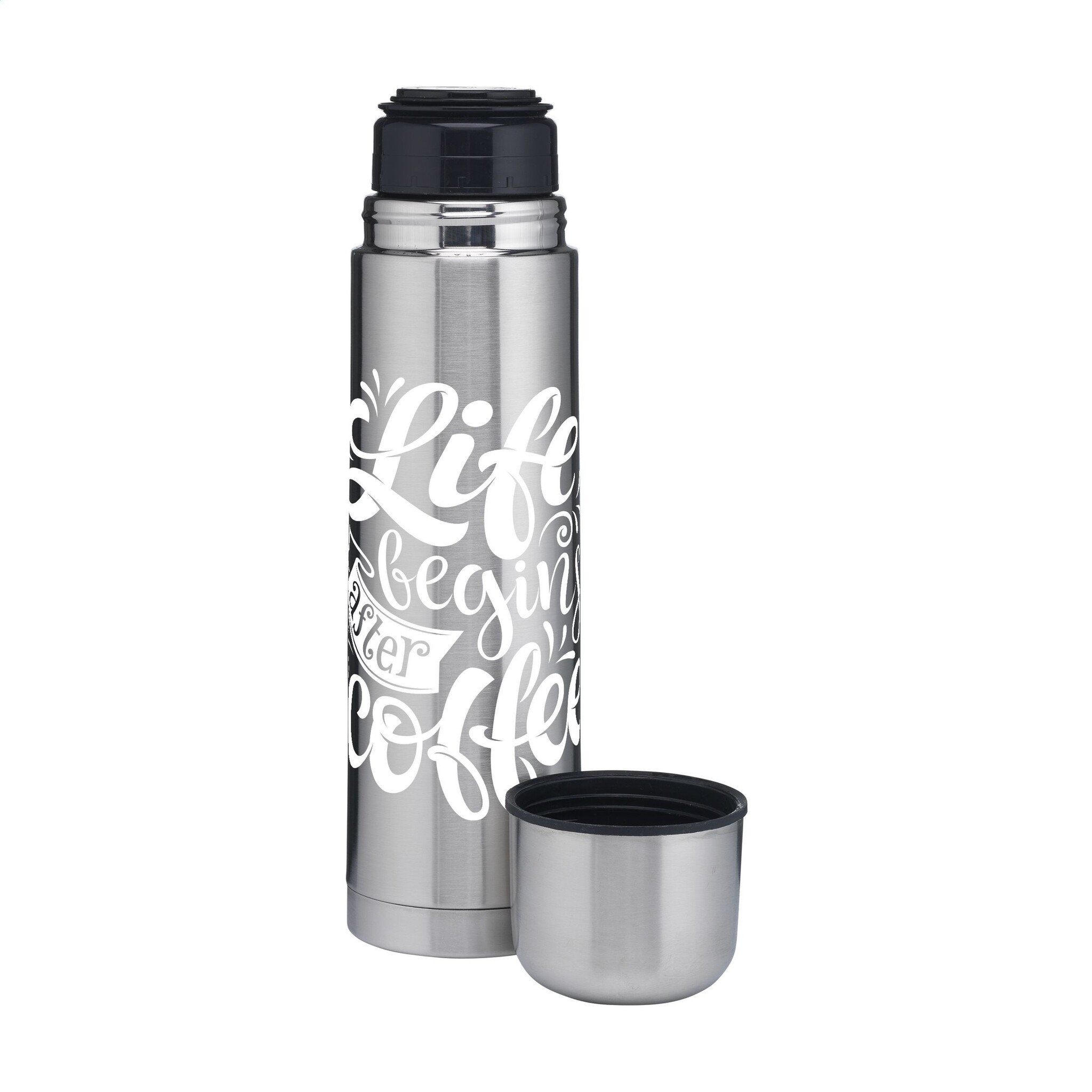 WoW! Dubbelwandige, vacuum geisoleerde thermosfles van gerecycled RVS. Onbreekbaar en ijzersterk. De vacuumruimte tussen de wanden isoleert de inhoud en houdt dranken lange tijd warm of koud. Met schroefdop/drinkbeker en handig schenksysteem met druksluiting. Lekvrij. RCS-gecertificeerd. Totaal gerecycled materiaal: 75%. Inhoud 750 ml. RVS kan vele malen gerecycled worden terwijl de kwaliteit van het materiaal grotendeels behouden blijft. Door het gebruik van gerecycled RVS worden minder nieuwe grondstoffen gebruikt. Dit betekent minder energieverbruik en minder gebruik van water.