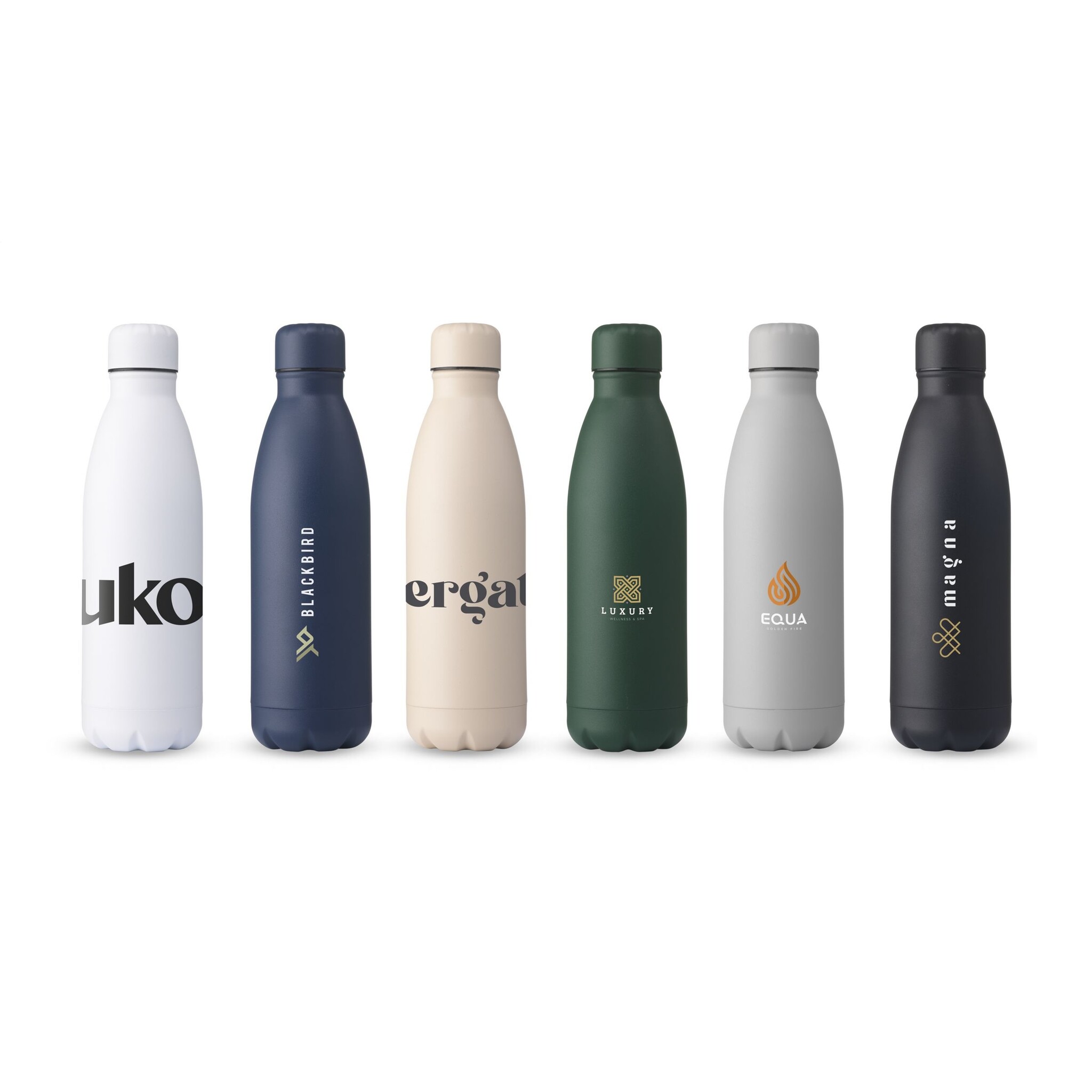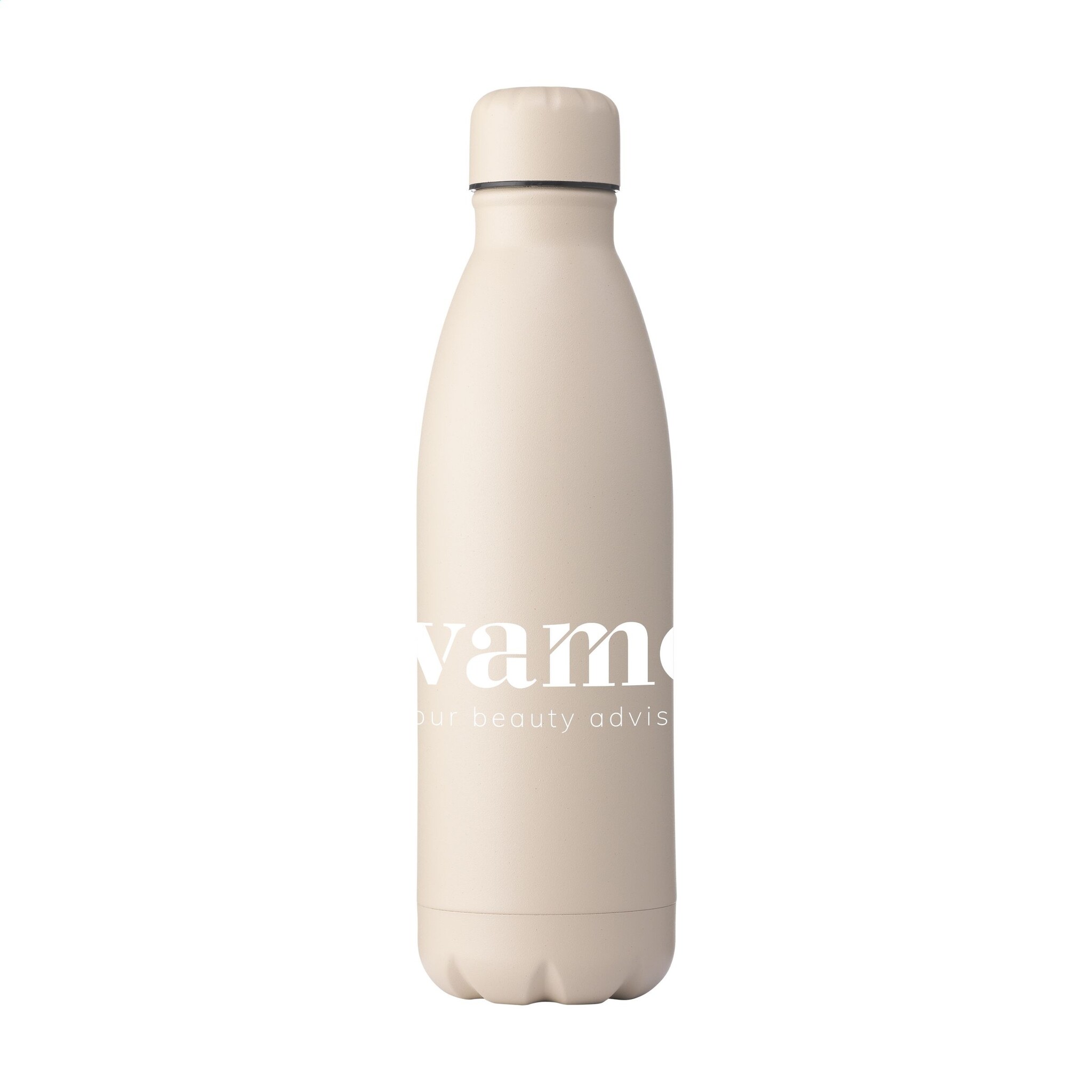 De draaidop, uitgevoerd in dezelfde kleur als de fles, versterkt de strakke uitstraling. Met een diameter van zeven centimeter past de fles perfect in vrijwel elke bekerhouder in de auto, wat hem ideaal maakt voor onderweg. De RCS-certificering garandeert dat de keten van gerecyclede materialen volledig is gecontroleerd en traceerbaar. De fles bestaat voor vijfentachtig procent uit gerecycled materiaal, wat aanzienlijk bijdraagt aan verminderd grondstoffengebruik en een lagere CO₂-uitstoot.